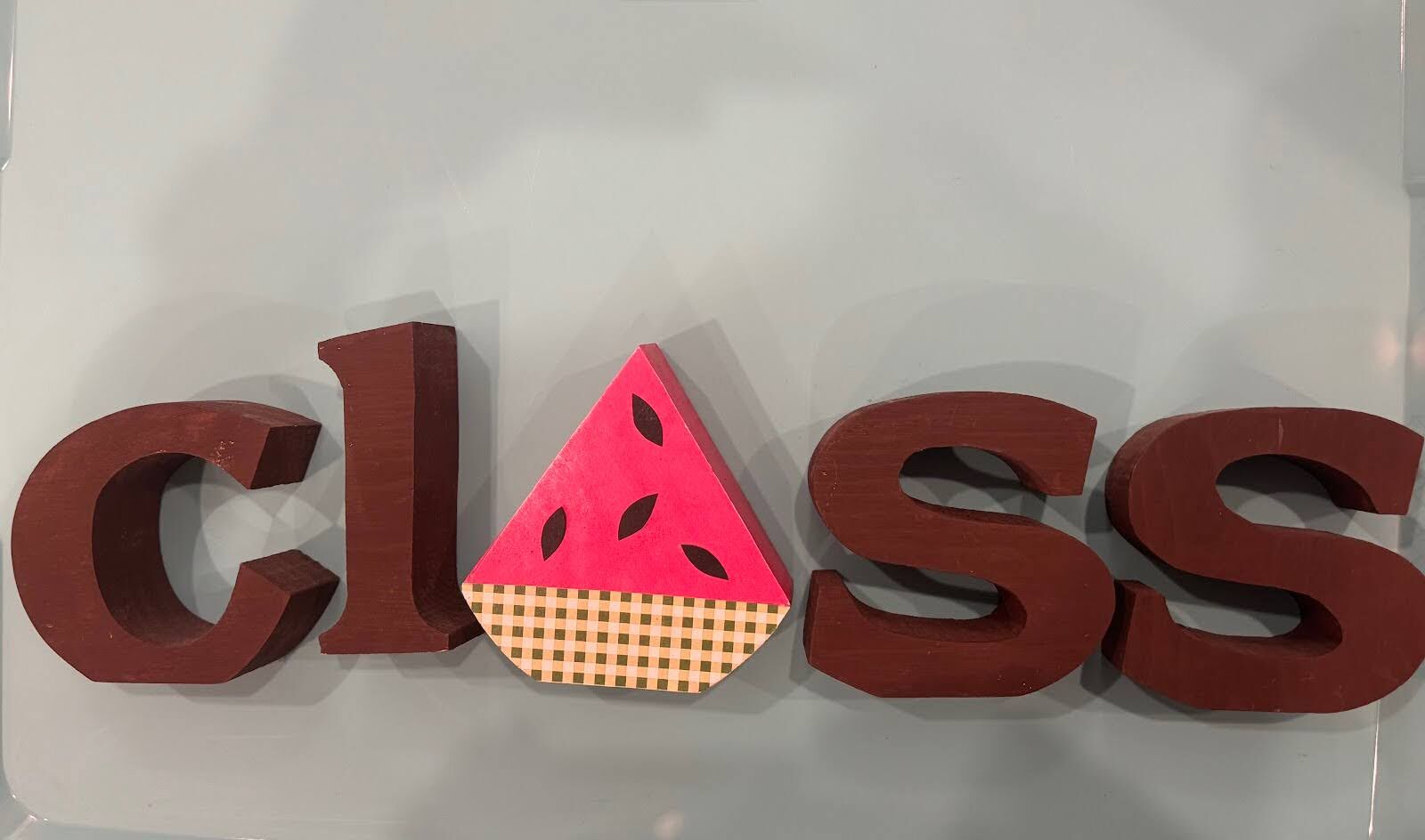 Word “Class” letters decoration (minus letter “a” which I replace with a season themed object)