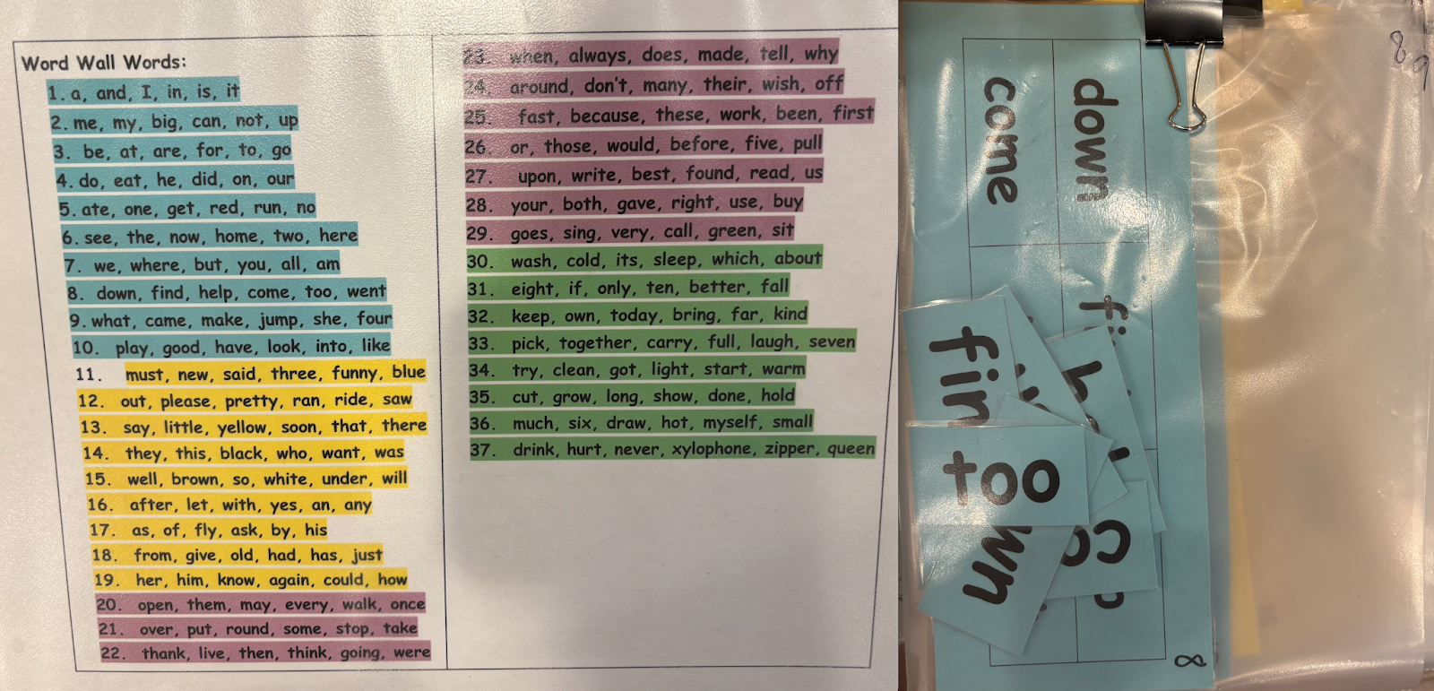 Large organized binder of word walls words with velcro & word group poster (6 words) (37 groups of 6 words- 222 words total)