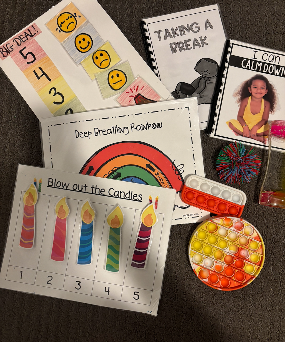 Calm down kit (2 booklets, 3 interactive posters & 4 sensory fidgets)