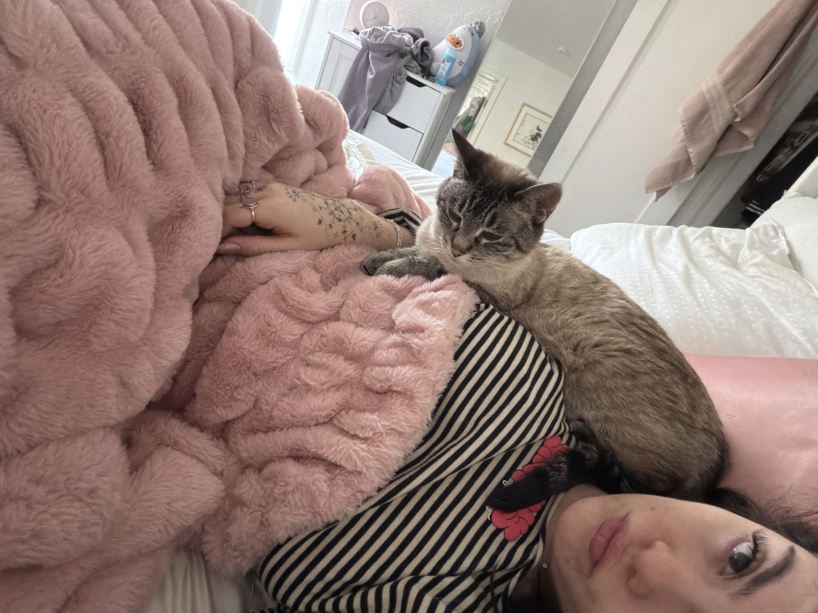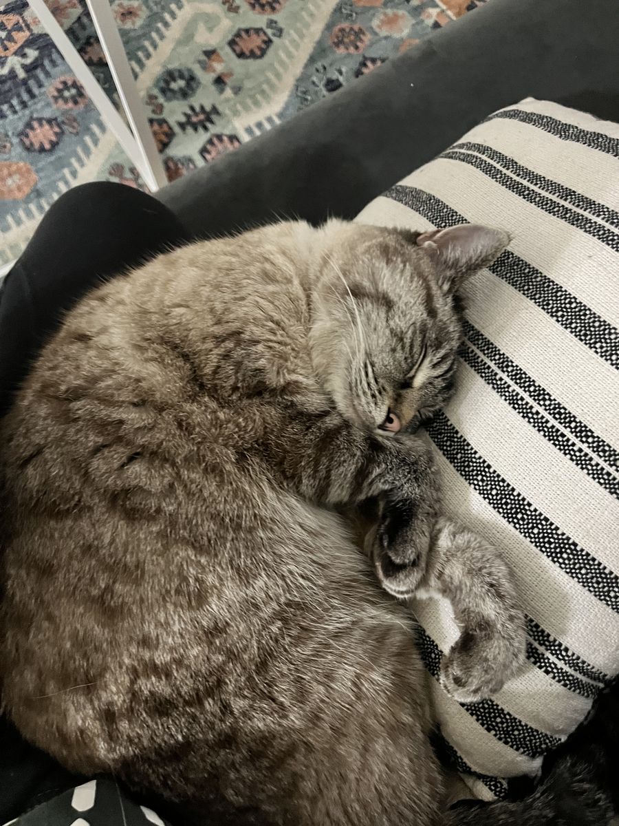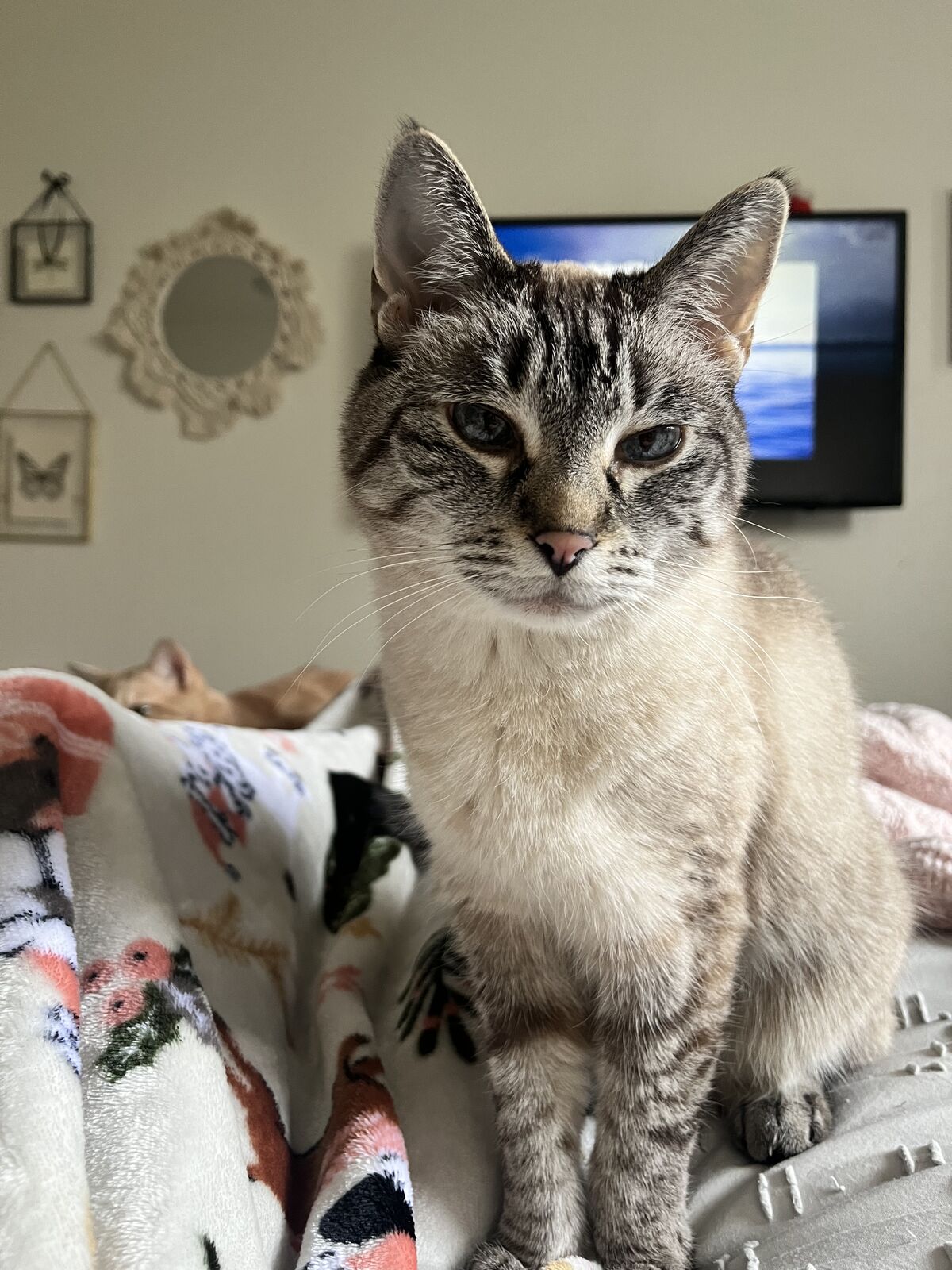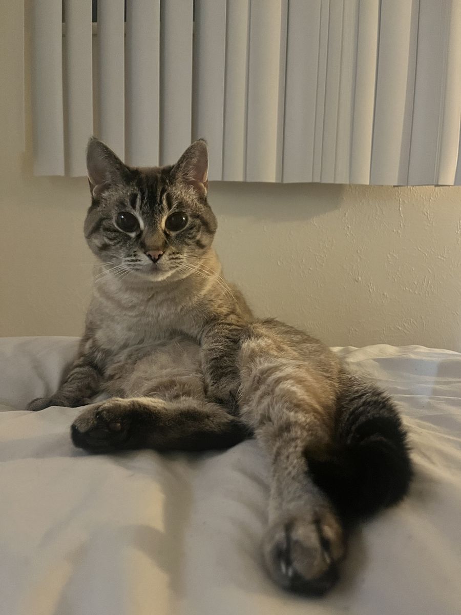 She absolutely thrives on attention and affection. Her favorite thing in the world is sitting with her person, soaking up pets, making biscuits, and purring contentedly. She isn’t high-maintenance — she simply wants a peaceful home where she can feel safe, secure, and adored.
