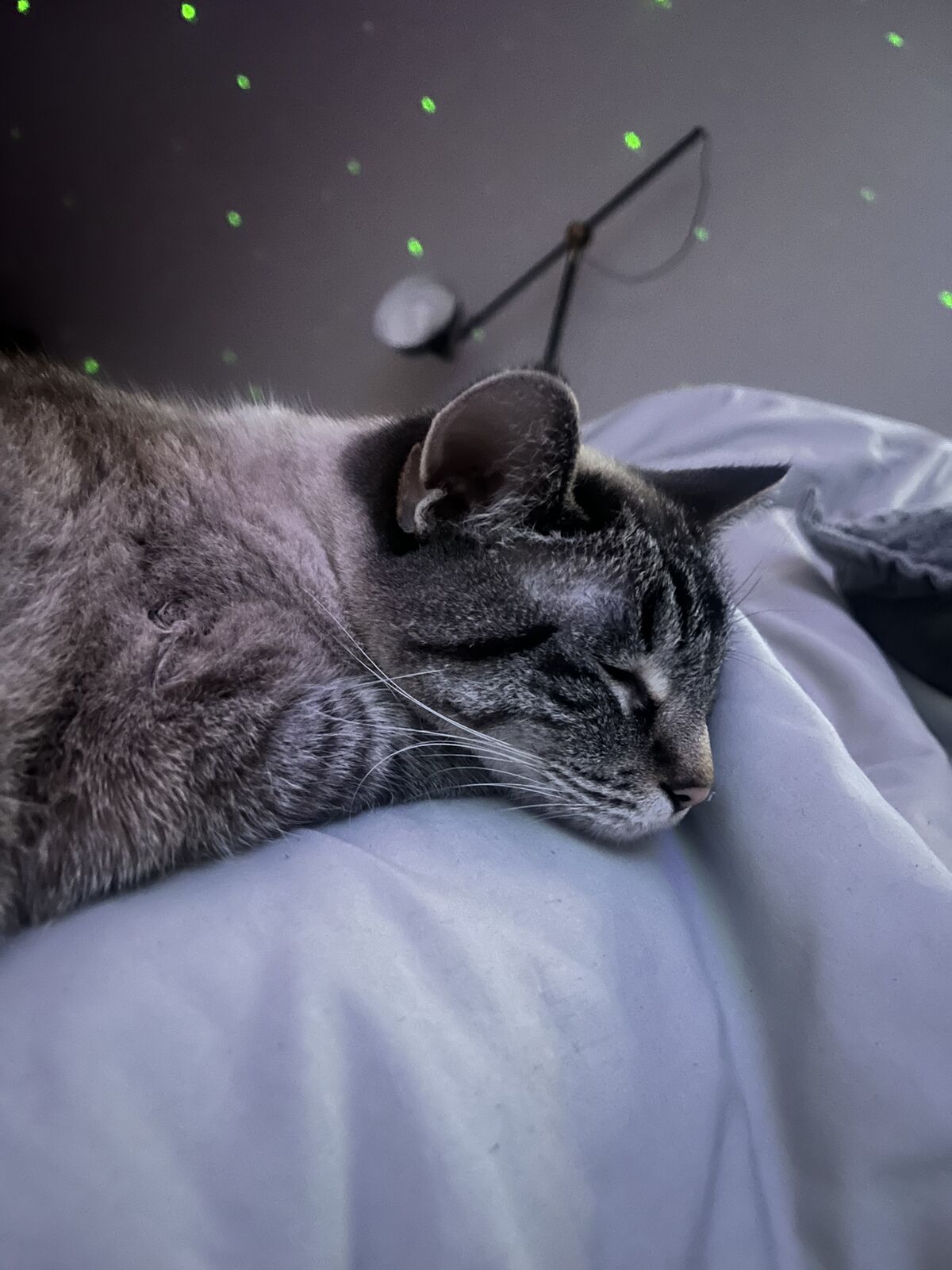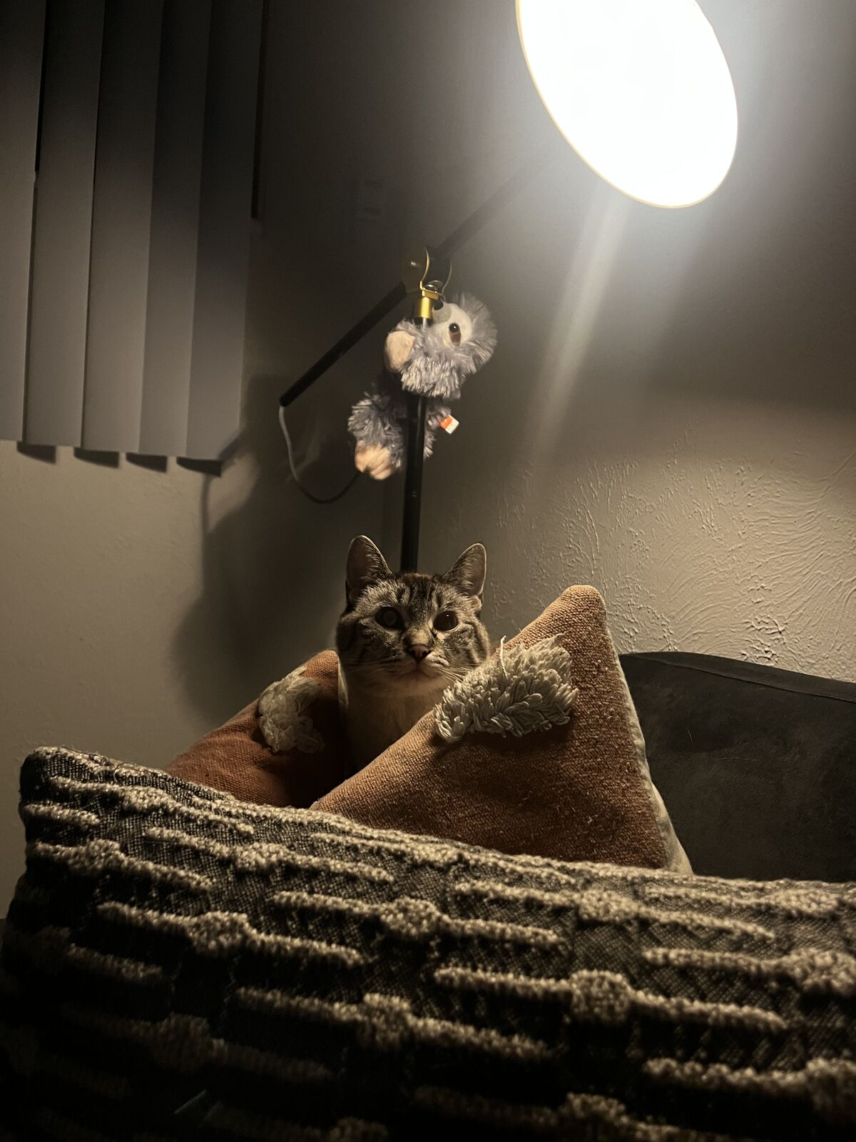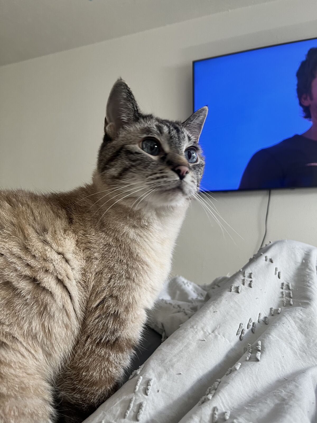 She absolutely thrives on attention and affection. Her favorite thing in the world is sitting with her person, soaking up pets, making biscuits, and purring contentedly. She isn’t high-maintenance — she simply wants a peaceful home where she can feel safe, secure, and adored.