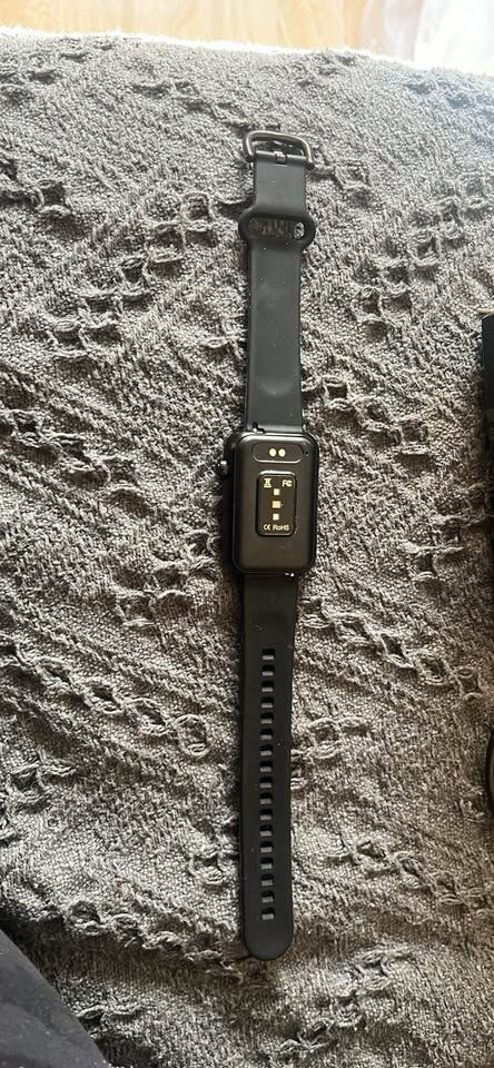 Venmoblack smart watch fitness tracker. Can answer/make calls. Has heart rate and blood pressure monitor. Tracks sleep cycles. Also tracks steps, calories, and distance. water resistant Comes with charger and extra band. retails for $97 asking $45 OBO