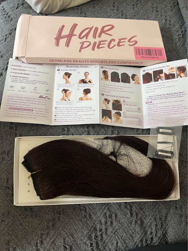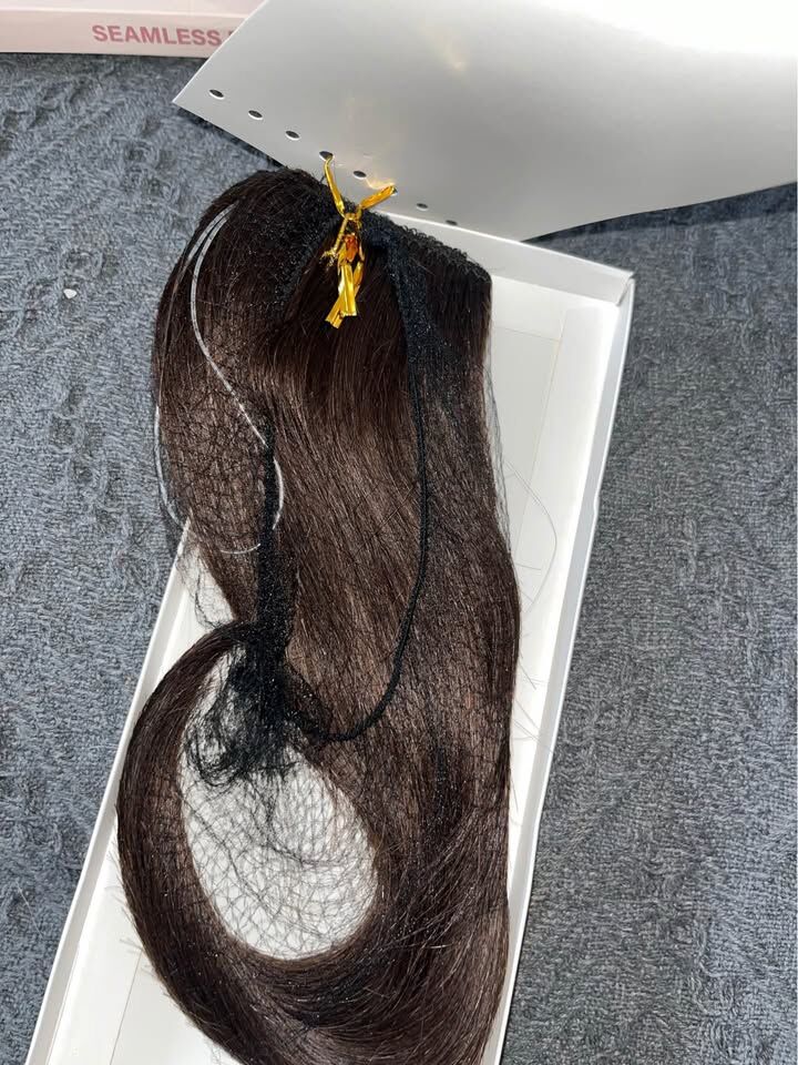 ApplePayS-noilite Halo Hair Extension Invisible Wire in Real Remy Human Hair Extensions with Clips Adjustable Hidden Wire in Hair Extension for Women 12 inch Dark Brown retails for $32 (brand new never worn)