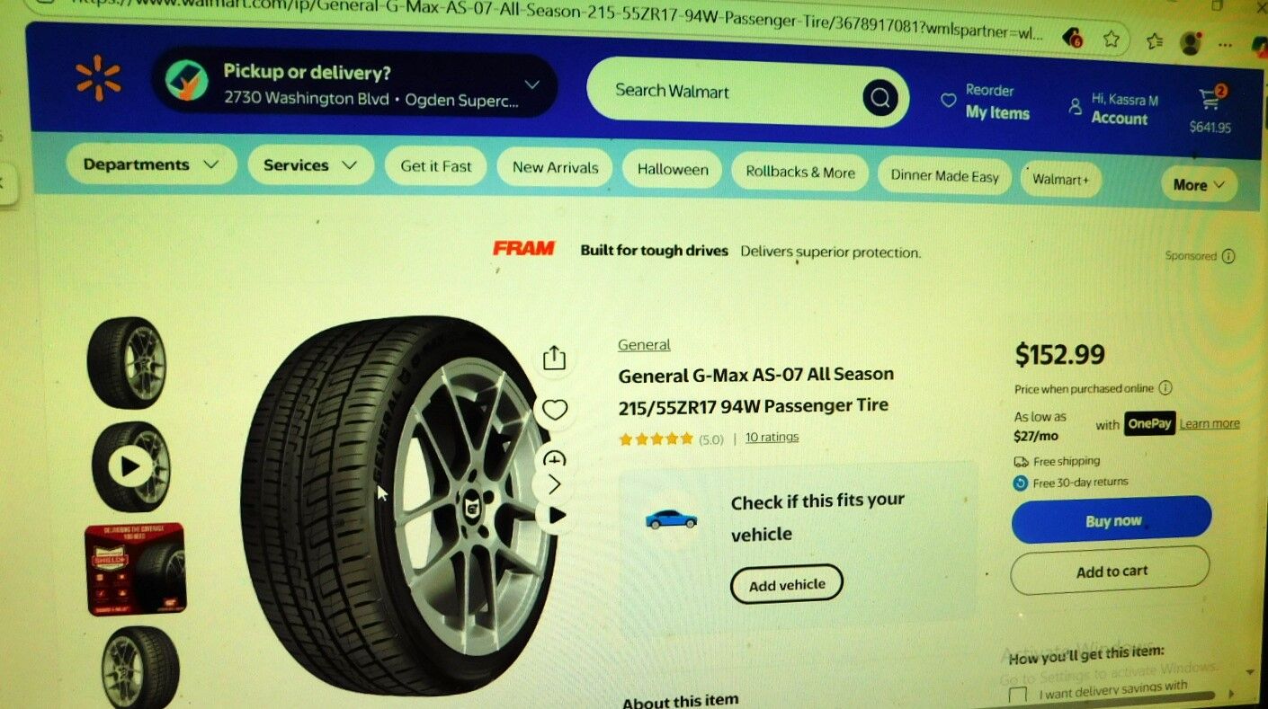 Set of 4 215 55ZR 17 General G=Max AS-05 A/S M/S 94W all season like brand new $280 $70 per tire Walmart $153 per tire must see