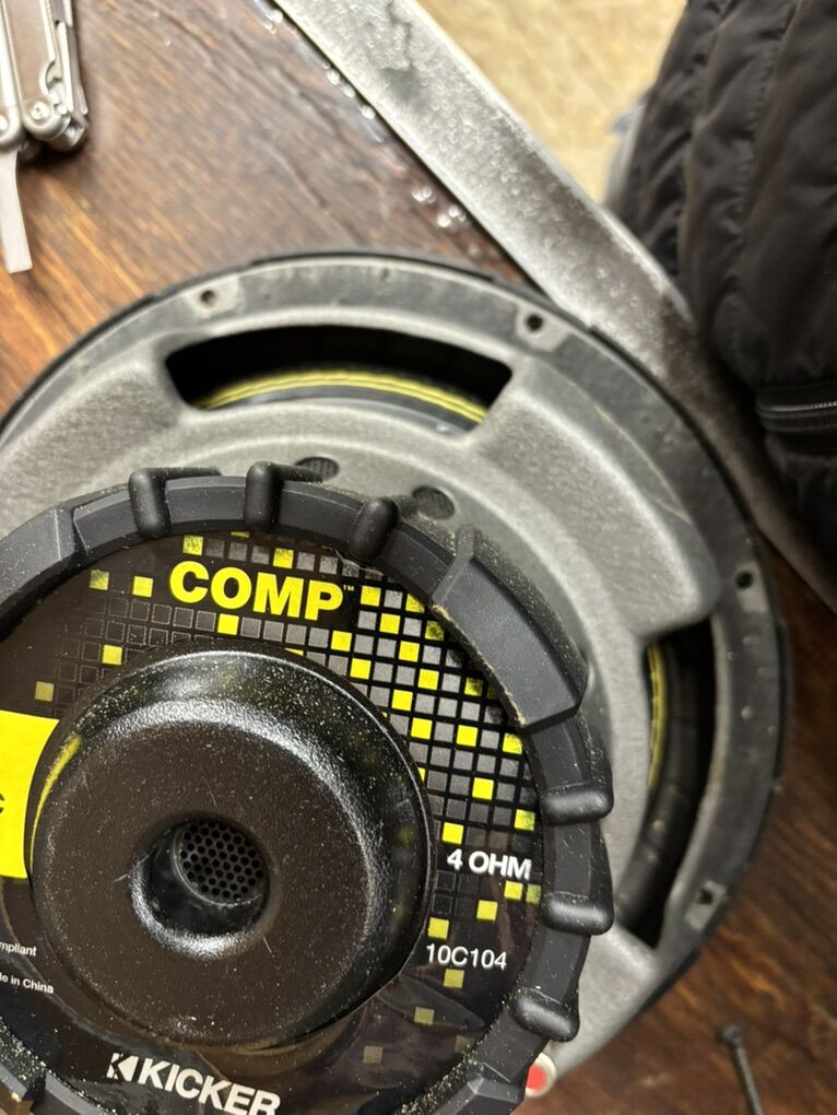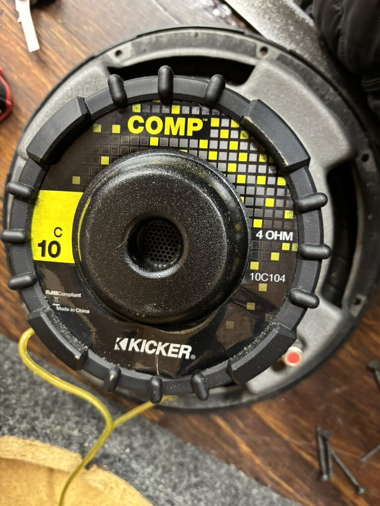 VenmoBox with 2 Kicker Comp 10 Subwoofer 10C104 150W RMS 4 Ohm Box is 30.5” x 13.5” x 11.5” In good working condition