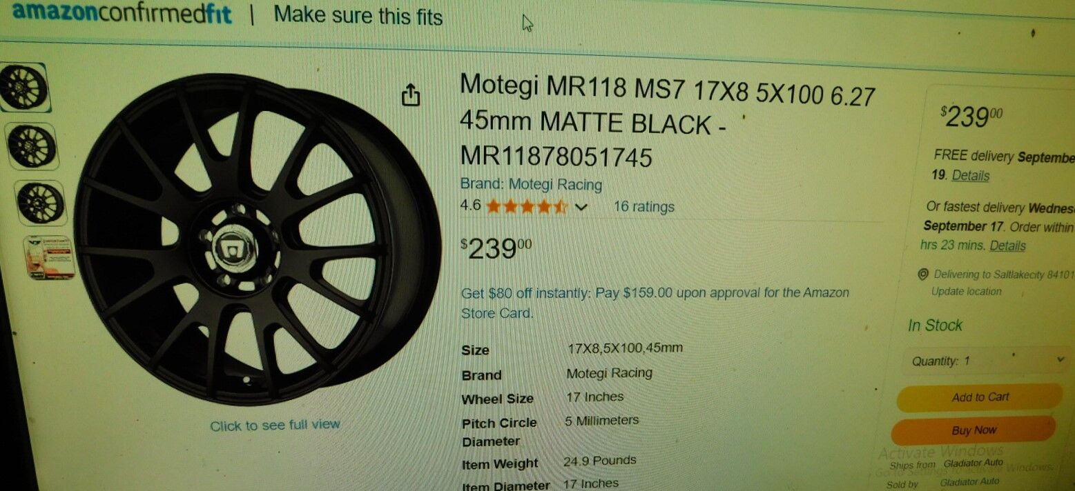Set of 4 17x8 inches Motegi black rims Lug pattern 5x100mm or 5x3.93 inches no bent no dent or scratches $300 must see
