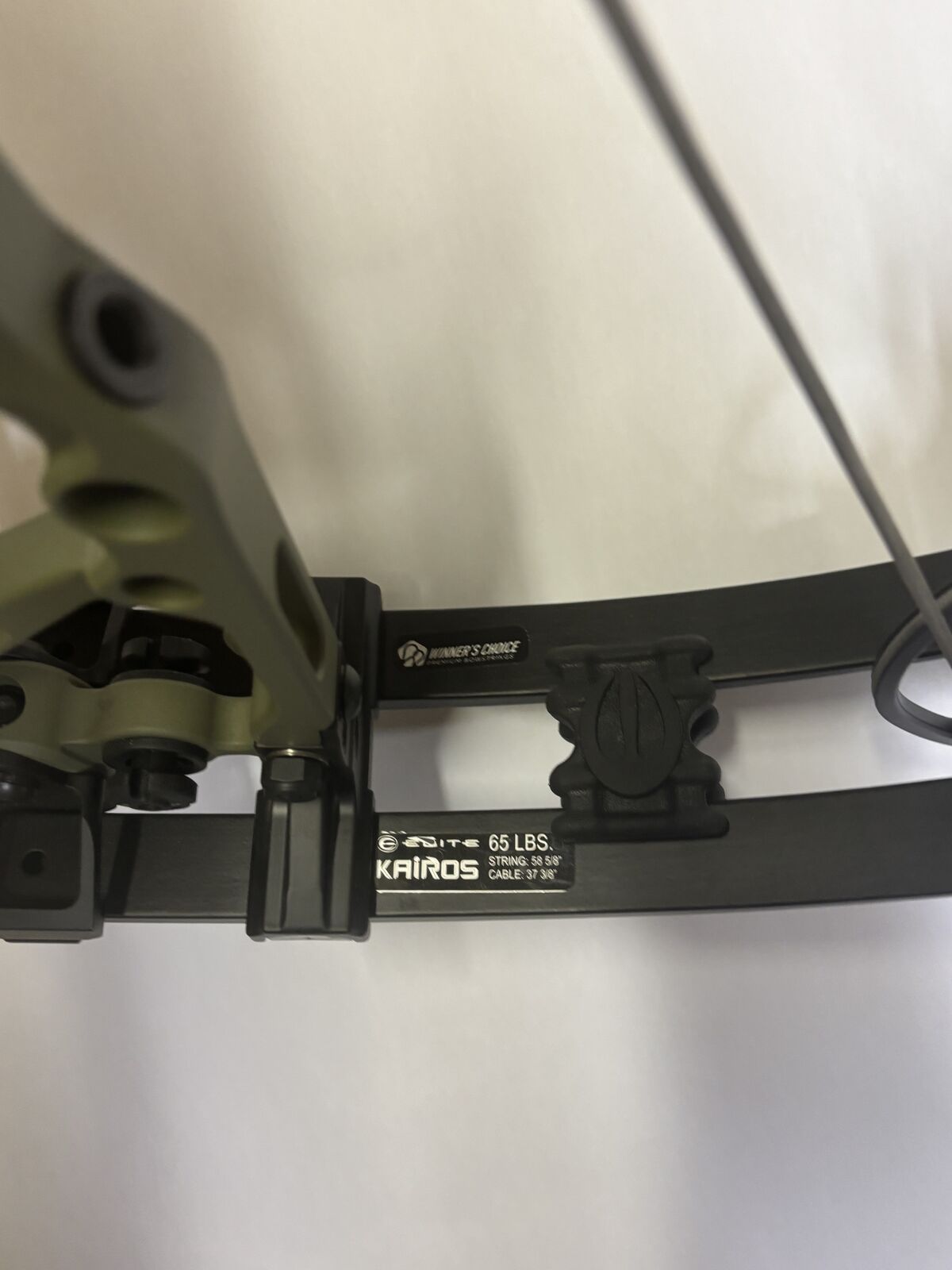 VenmoElite Kairos bow, marked 65lbs, pulls 70. Been shot about 20 times, no issues.