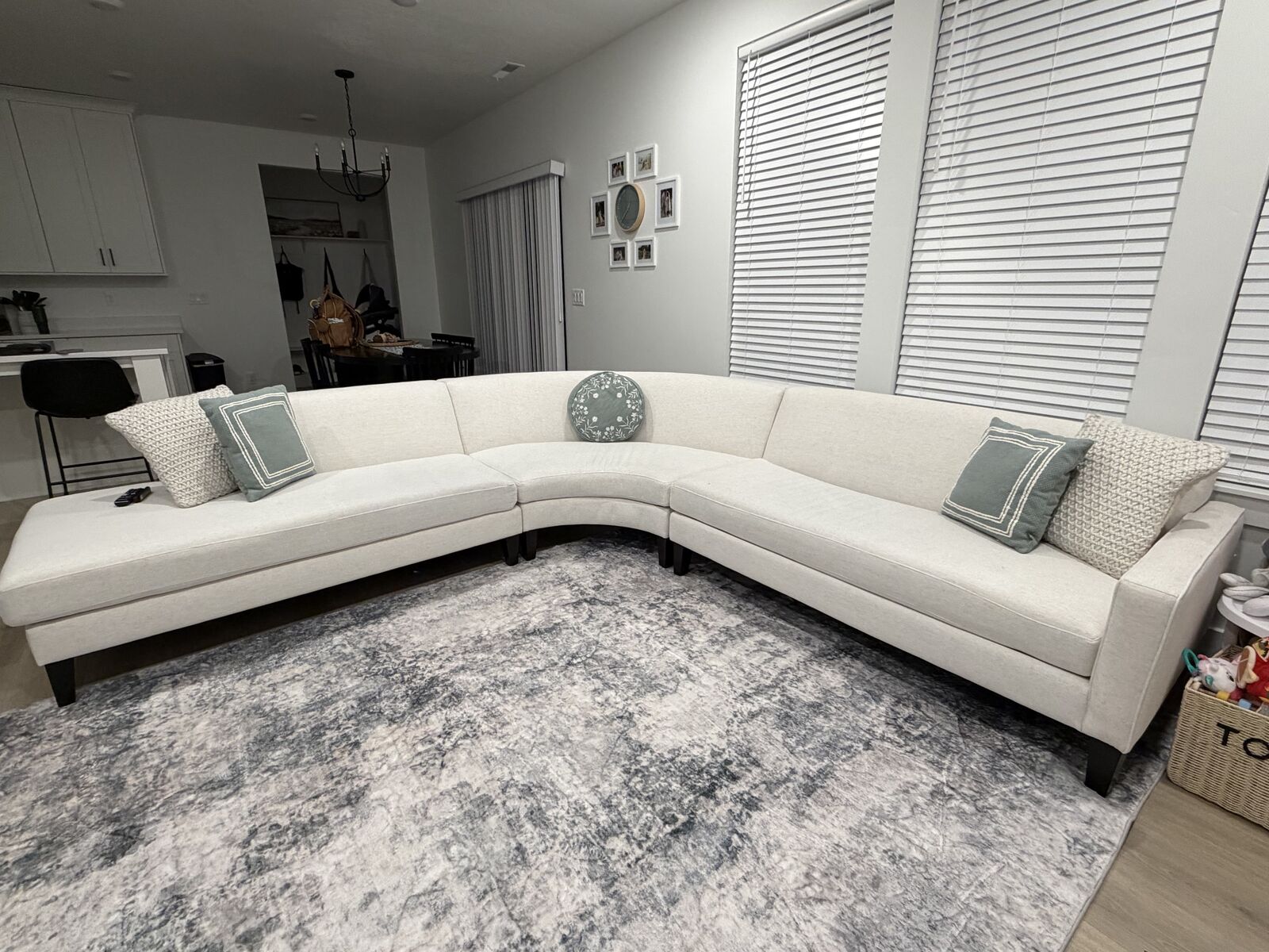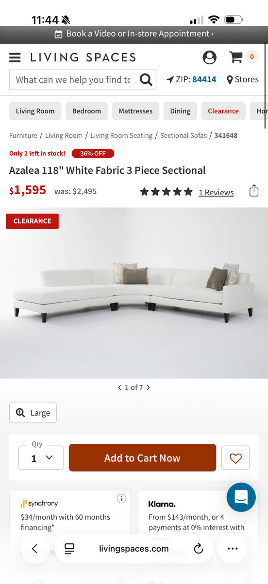 VenmoBeautiful Azalea sectional from Living Spaces in great condition. This couch is extremely comfortable and we get compliments on it every time someone new comes over. The fabric is a soft white that brightens up the room and works with many decor styles.