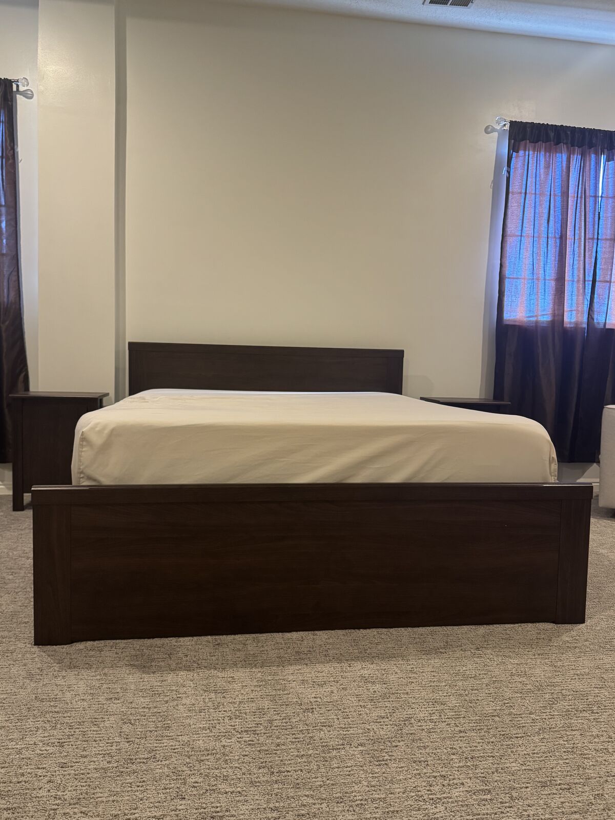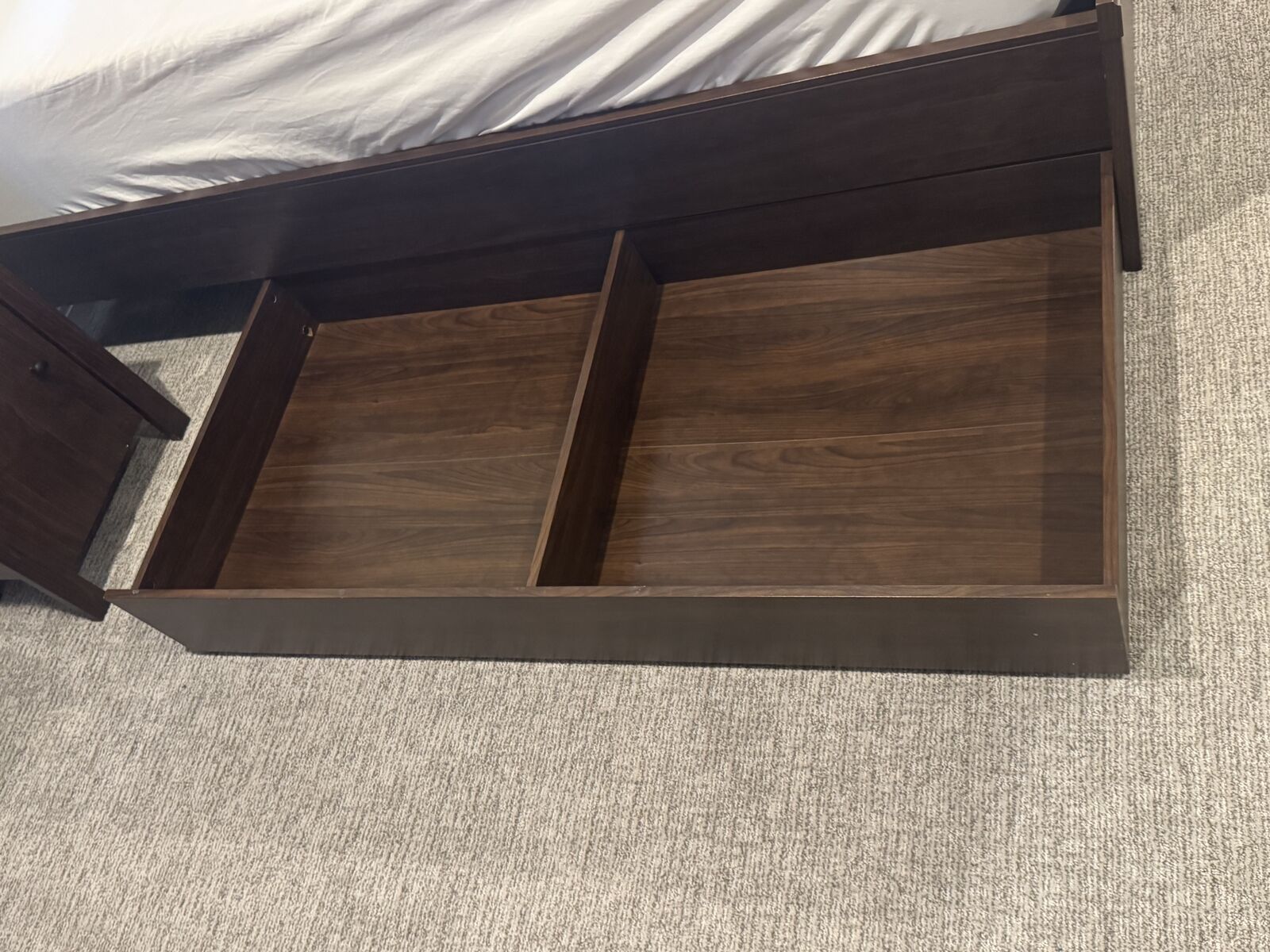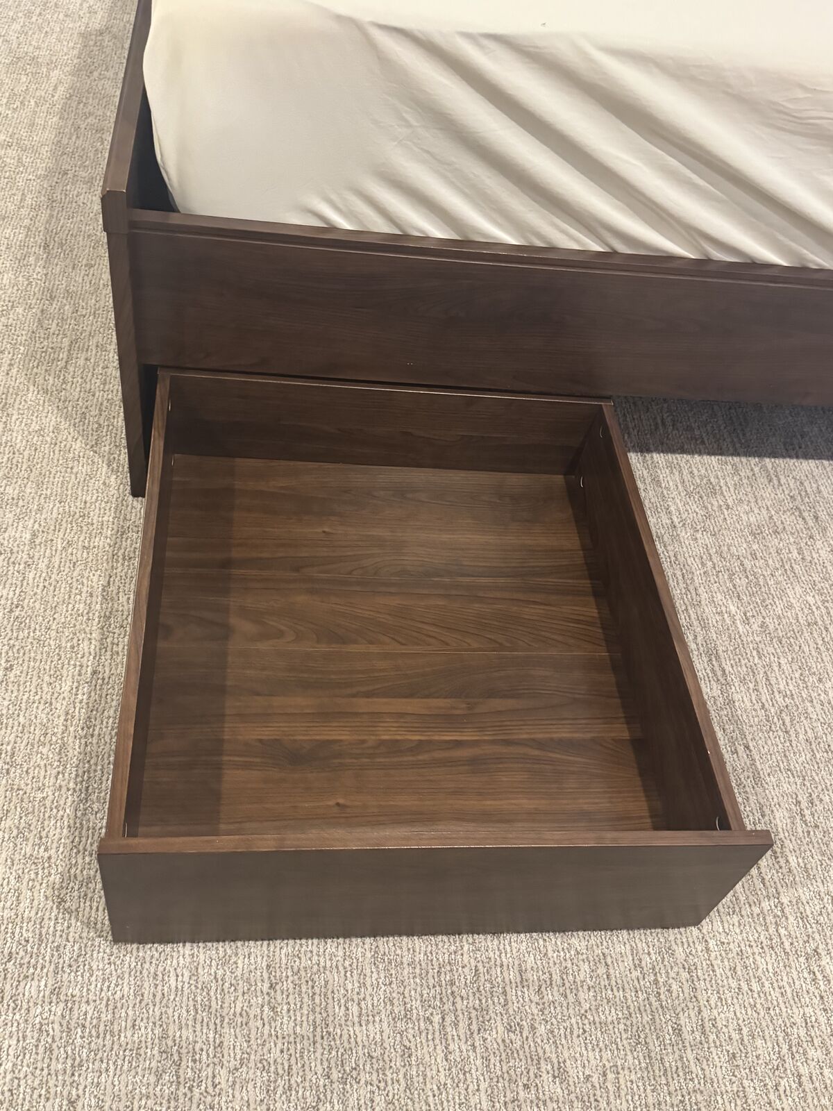 ApplePayLike new, Queen Brown Ikea Brusali bed & set of 2 rolling underbed storage. In perfect condition. Comes from clean, smoke-free/pet-free home. Purchased for $575 + tax, asking $175 for all! Mattress from Ikea is included but you also don’t have to keep it. Message for questions