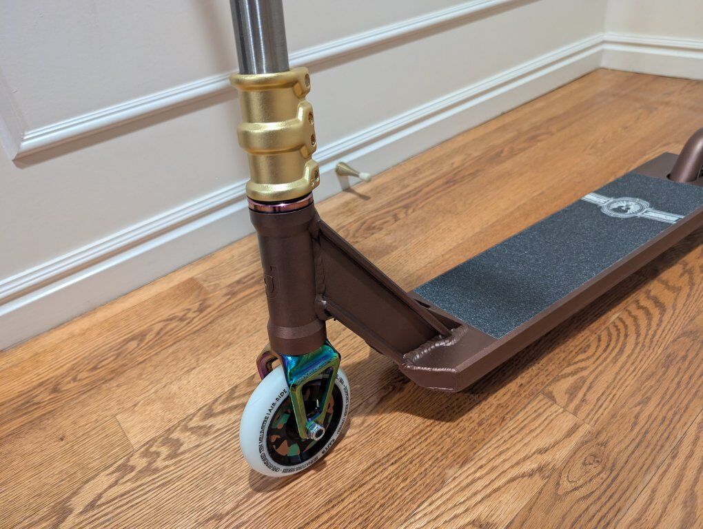 I have tons of pro scooter parts for building complete scooters. the pictures show 2 examples of scooters I've built from my inventory. I have different colors and styles of grips, decks, bars, wheels, clamps, forks, headsets, etc. Just text me if you're interested and I'll send you pictures to choose from. I'll build the full scooter for you as well.