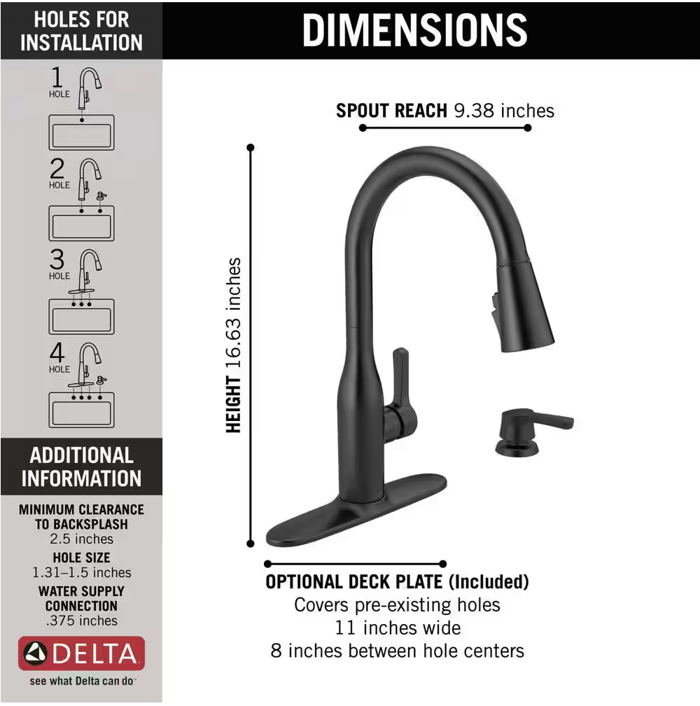 DELTA Marca Single-Handle Pull-Down Sprayer Kitchen Faucet with ShieldSpray Technology in Matte Black
