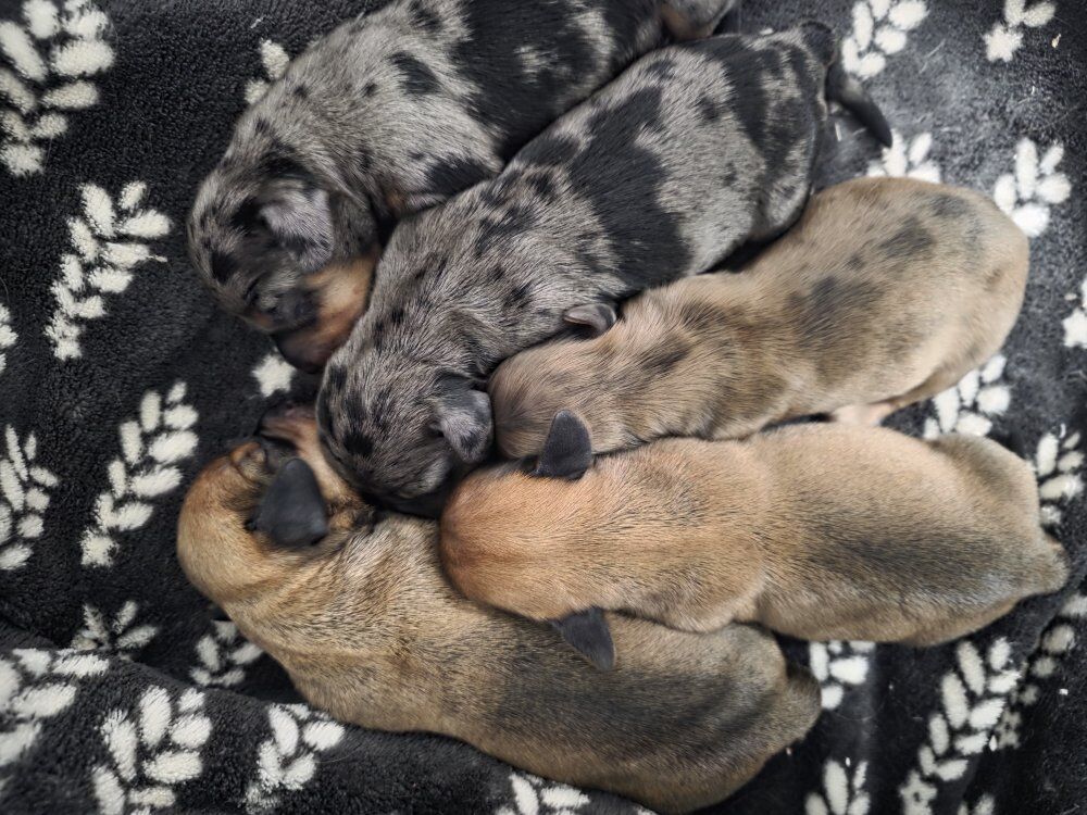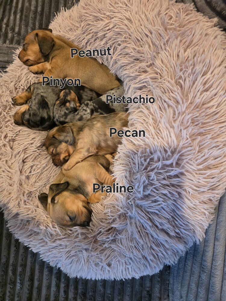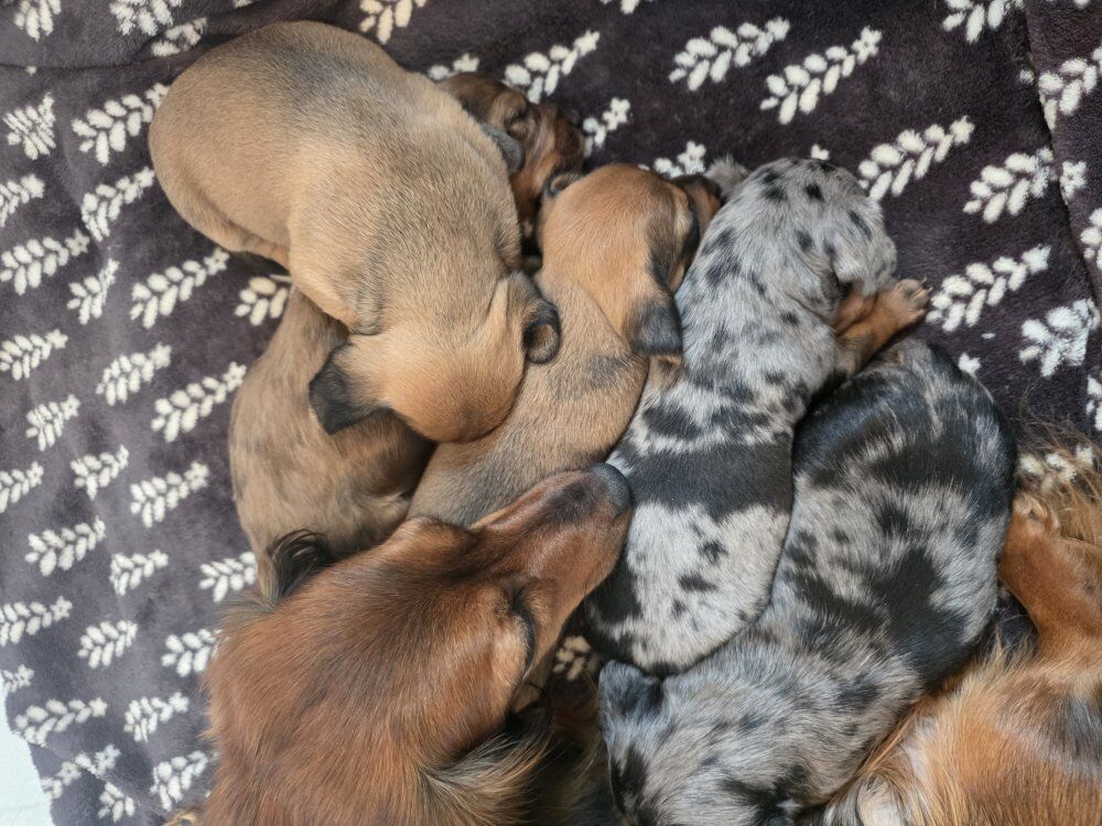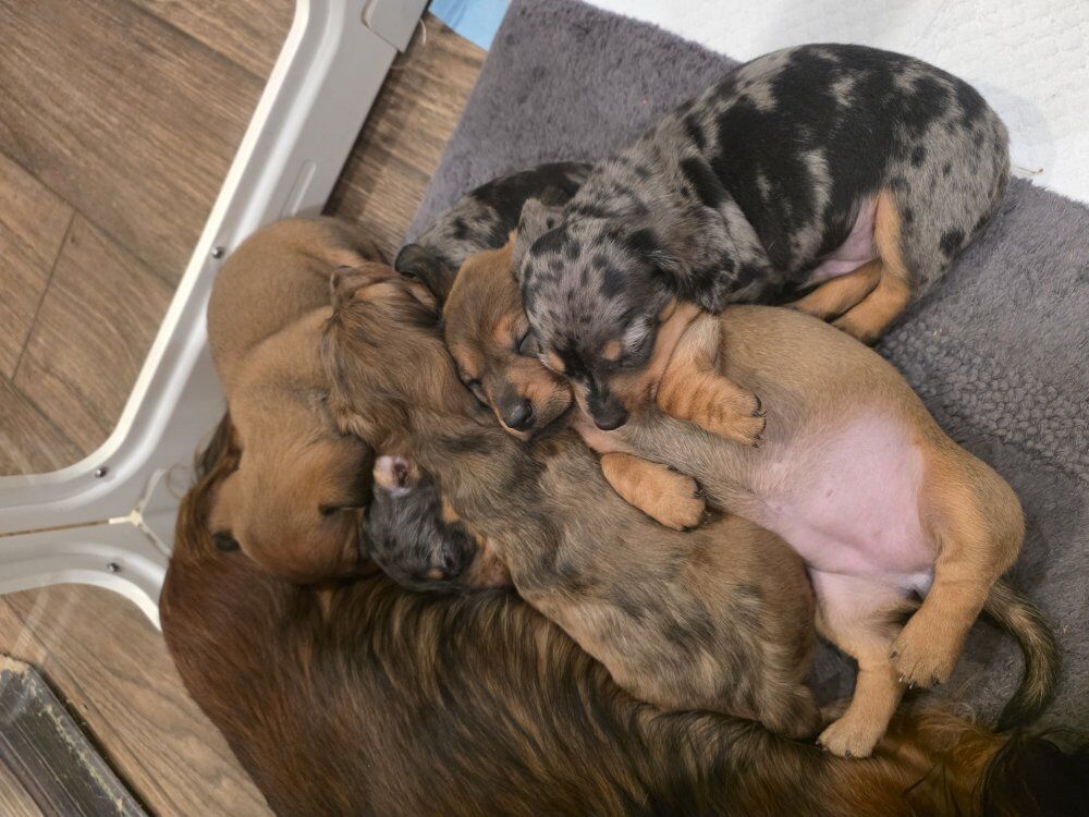 Venmo5 beautiful purebred miniature dachshund puppies (not registered) will be 8 weeks and ready to go to their new homes March 17. All are sweet, social and cuddly, and will have their first set of vaccines. 2 male silver dapples $1000 1 male long-haired red dapple $1000 1 red male $800 1 red female $800