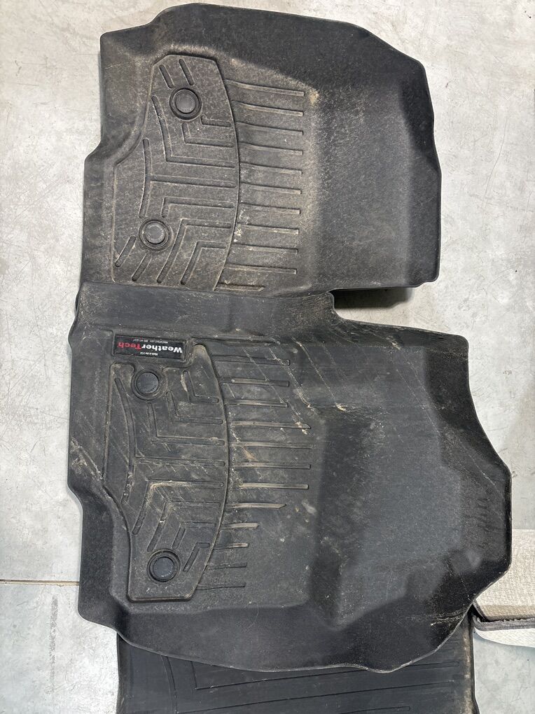 Front and rear mats from WeatherTech for Ford F150 and F250 F350 without storage underneath rear seats.