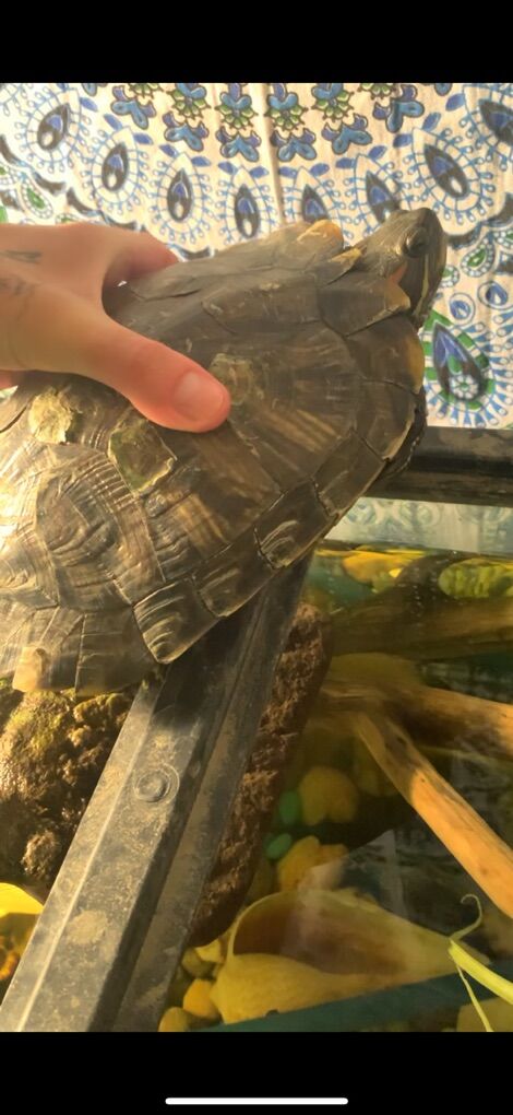 She’s healthy, social, and has never bitten anyone. She doesn’t exactly love being held, but she tolerates it fine when you need to move her between tanks. She’s used to regular cleanings and water changes and always keeps herself busy swimming, basking, and exploring. She’s super curious and active. I’ve kept her in a pretty deep tank, so she is a super great swimmer.
