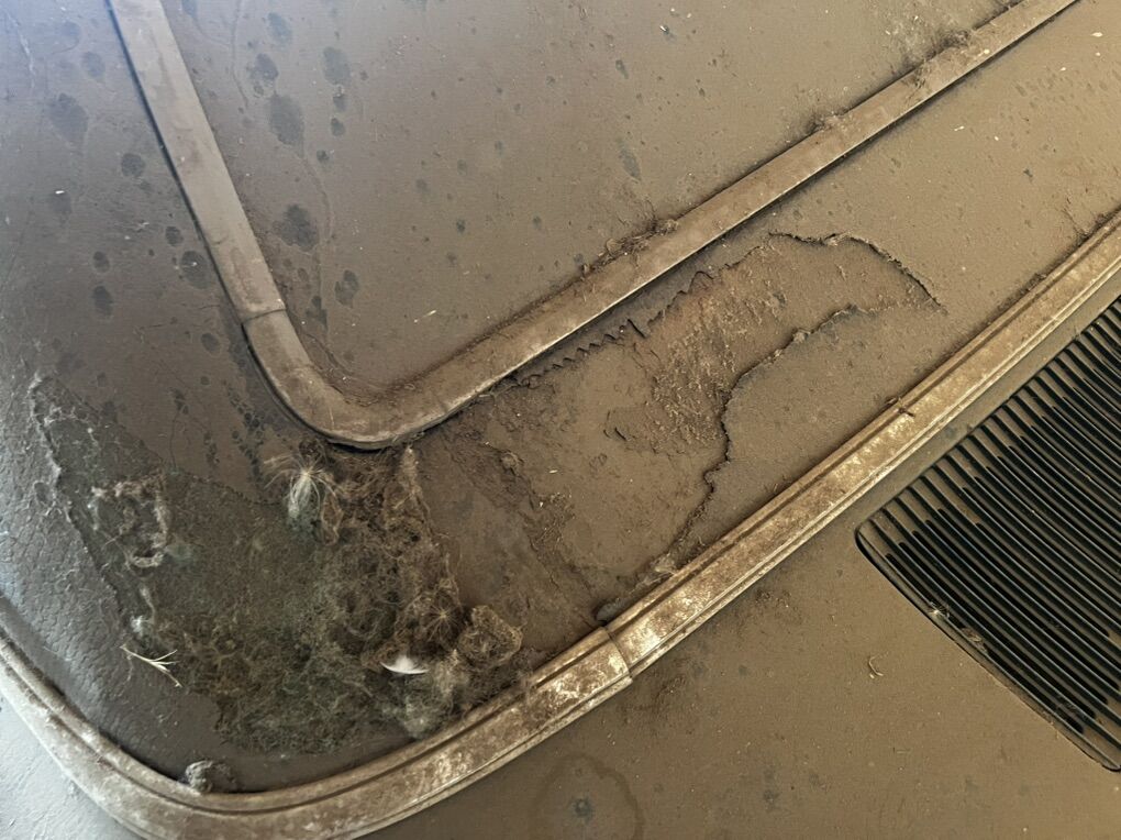 Car was last ran 20 years ago then parked in a garage before moved to its current location. Always with some form of roof structure over it.