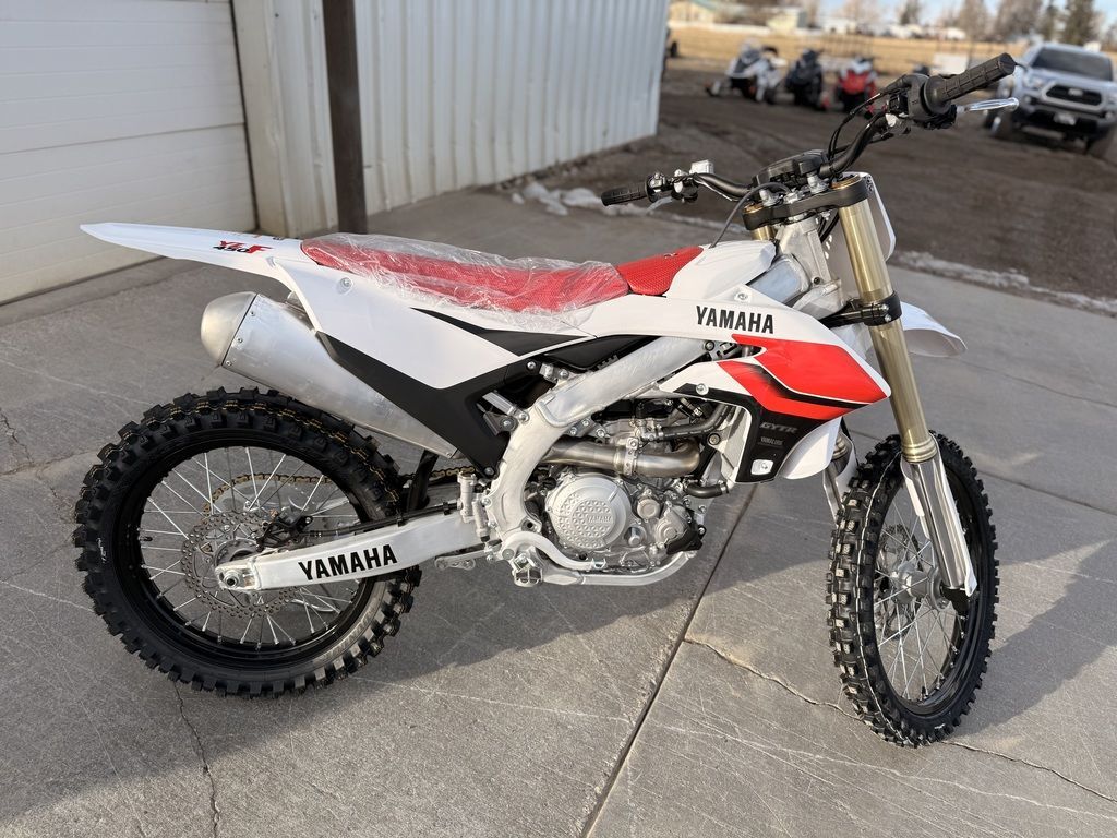 Amazing colors, come get it before it’s gone. 2026 Yamaha YZ450F 70th Anniversary EditionSUPREME CAPABLITY, ICONIC STYLEThe pinnacle of off-road four-stroke performance wrapped in iconic Yamaha 70th Anniversary livery. Get the unmatched capability of the YZ450F in jaw-dropping commemorative style.Features may include:ENGINETri-shaft transmission layout vertically stacks the transmission shafts for a lighter, more compact transmission.The YZ450F's advanced disc spring clutch design is compact, durable with smooth engagement and excellent feel.An adjustable Launch Control System controlled through the Power Tuner App optimizes launches when the gate drops.Optimized intake path draws air from under the side covers and seat allowing for a slimmer and more compact shroud area.A three-level Traction Control System selectable within the Yamaha Power Tuner App maintains ideal rear wheel traction.Yamaha's industry-leading Power Tuner App offers the ability to tune air/fuel mixture and ignition timing to suit rider preference.CHASSIS/SUSPENSIONAn advanced aluminum bilateral beam frame strikes the perfect balance of precise cornering performance and handling stability.The YZ450F's class-leading fully adjustable Speed Sensitive front fork provides exceptional feel and bump absorption.A new KYB® shock improves damping feel and reduces bump reaction for enhanced control.A large 270mm front and 240mm rear disc combine with Nissin calipers to provide exceptional stopping power and control.The YZ450F's slim, flat, compact body and seamless, rounded features ease rider movement for improved control.The rider triangle is optimized for increased legroom, including a carefully considered handlebar position for enhanced comfort.ADDITIONAL FEATURESThe YZ450F features a compact electric starter system to minimize restart delays and add convenience.Additional top-spec details include wide foot pegs, quick-adjust clutch perch and gold drive chain with YZ450F-specific chain guide.