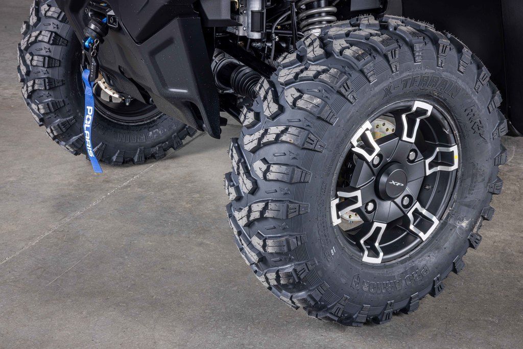 Navigate the toughest terrain confidently with 29” 8 ply Pro Armor tires providing enhanced puncture resistance and a more peaceful cab experience. The 14” aluminum wheels add premium styling to elevate rough rides
