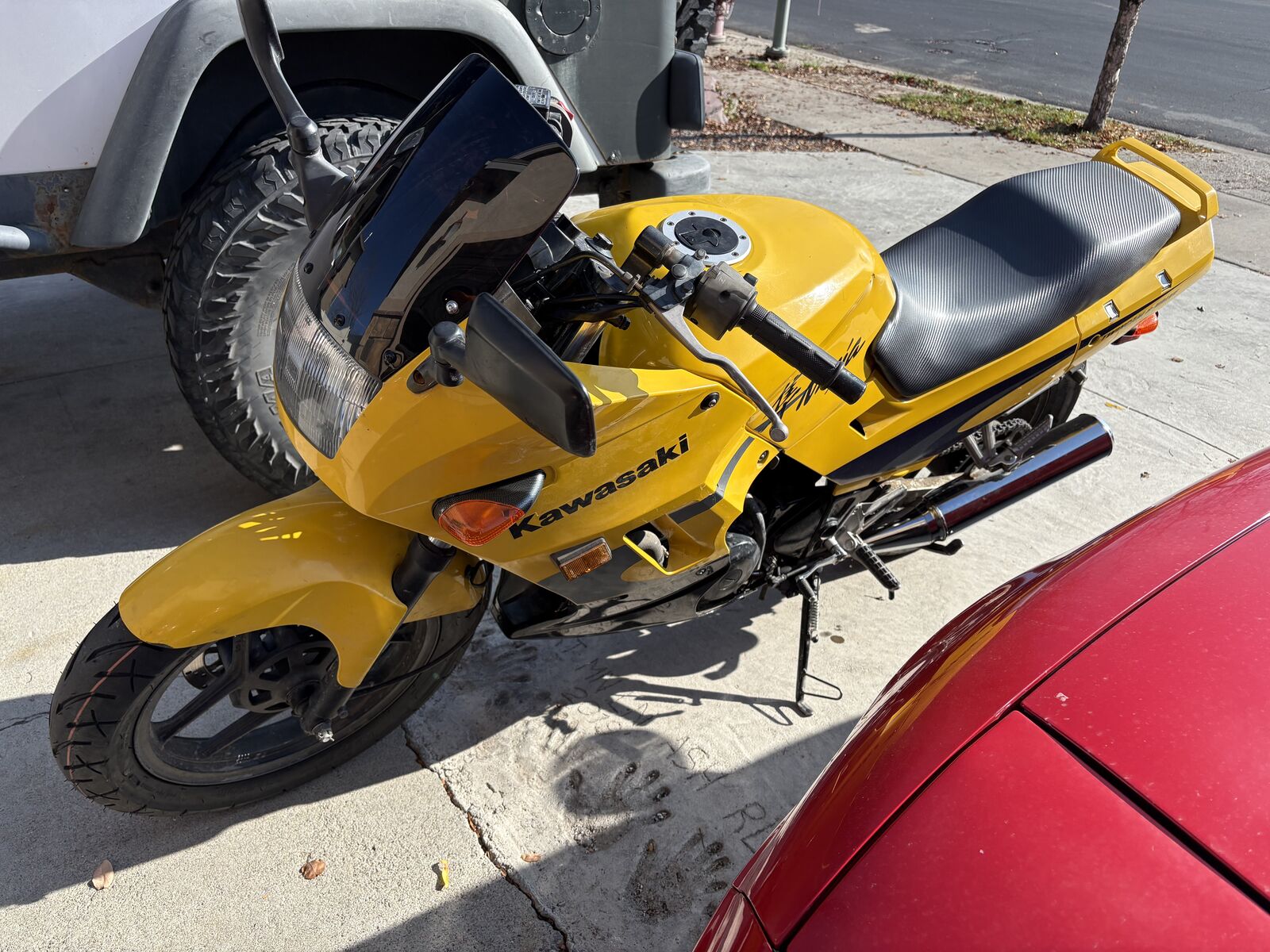 Fun little bike I took on trade. New tires and a bunch of little repairs done. The carbs still need work, it will sometimes flood, pretty sure the floats need to be adjusted. I have too many projects and just don't have time to spend on it. Runs and rides, needs a little tuning to be great.