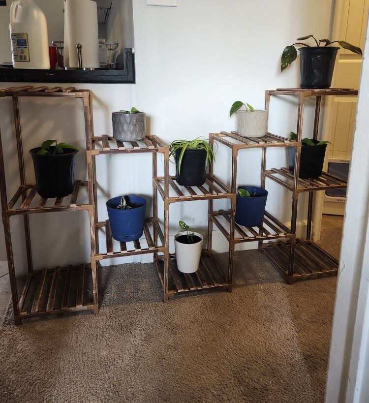 VenmoModular wooden plant stand in great condition. I assembled it already to save you time. It’s sturdy, clean and ready to use. Perfect for houseplants, small spaces and apartments. Neutral wood tone goes with everything. Originally purchased from Amazon. Plants not included.