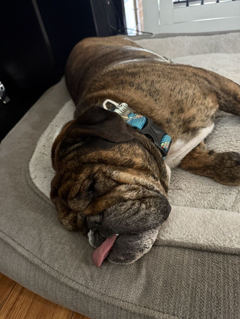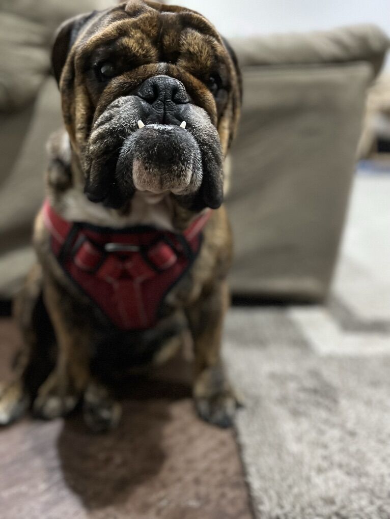 VenmoMeet Dozer! He is an 4 year old, Bulldog. AKC registered. Dozer is 50lbs. Dozer is Red Brindle and white, brindle. Mom is FN & WH, dad is FN & WH WH MKGS.