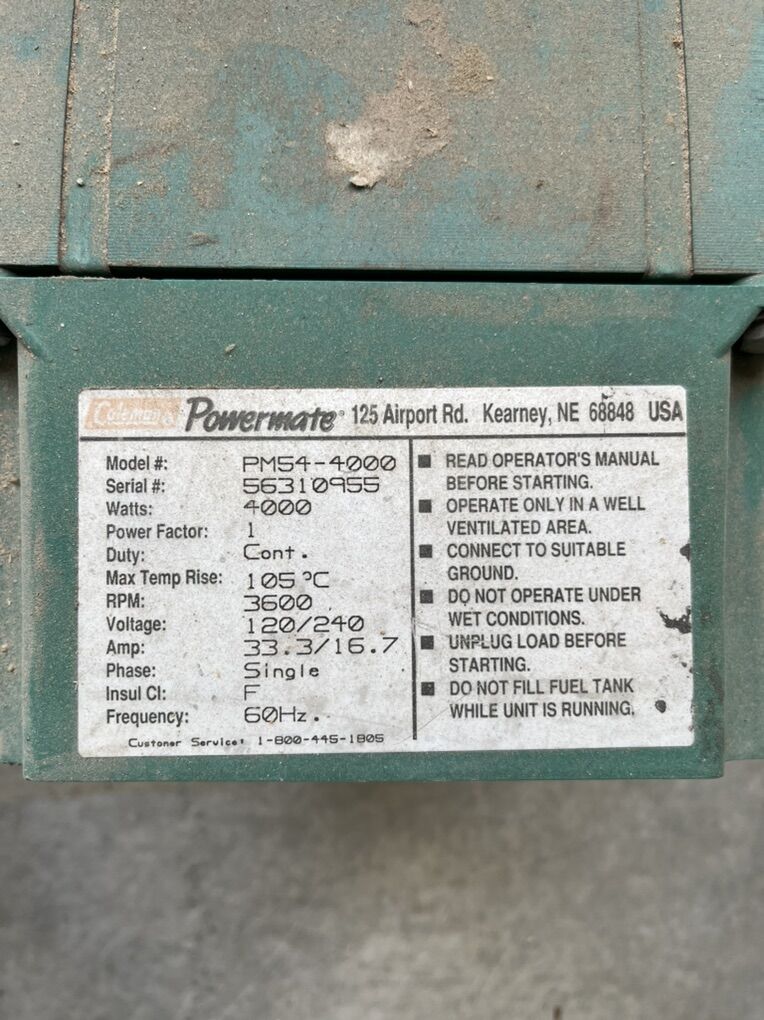 4,000 watt Coleman (gasoline)Generator