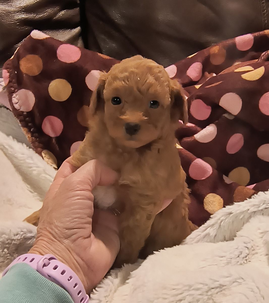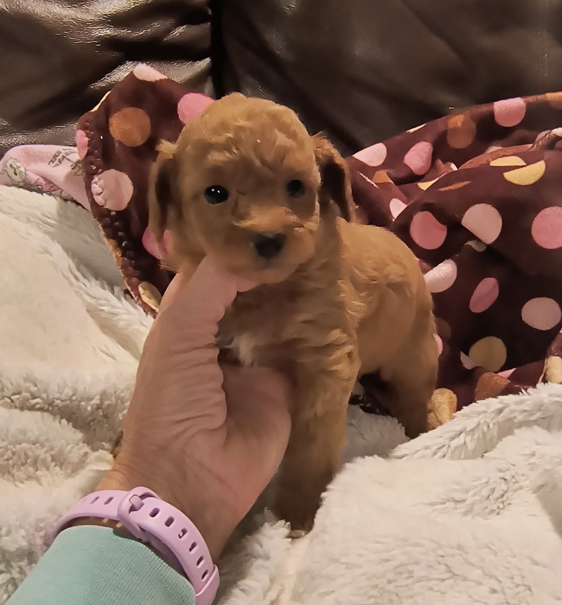 NO BREEDING RIGHTS. -Offered as pet only to be spoiled, pampered, and loved.-Tiny multi-generation Cavapoo puppy -born on January 31st and will be ready to find his family on March 28th. -One loving red male. These puppies are very social, happy and loving. They would make great support buddies. This little boy is charting to be right around 5 1/2 lbs as an adult. Mom is a 4 pound second generation blue Merle Cavapoo. Dad is a 4 pound Brown Poodle. They are hypoallergenic and do not shed. He has had his first vaccines and is completely de-wormed and been vet checked and found healthy. Vaccination and de-worming record will be provided along with a sample of food and a blanket that smells like Mom. -Offered as a pet only with no breeding papers. -A $500 non-refundable deposit will hold for you. Cash only. I have been raising these little guys for 47 years and offer 24/7 lifetime support. -Please call if you have any questions. I don't always receive text so please call. (801)854-8401