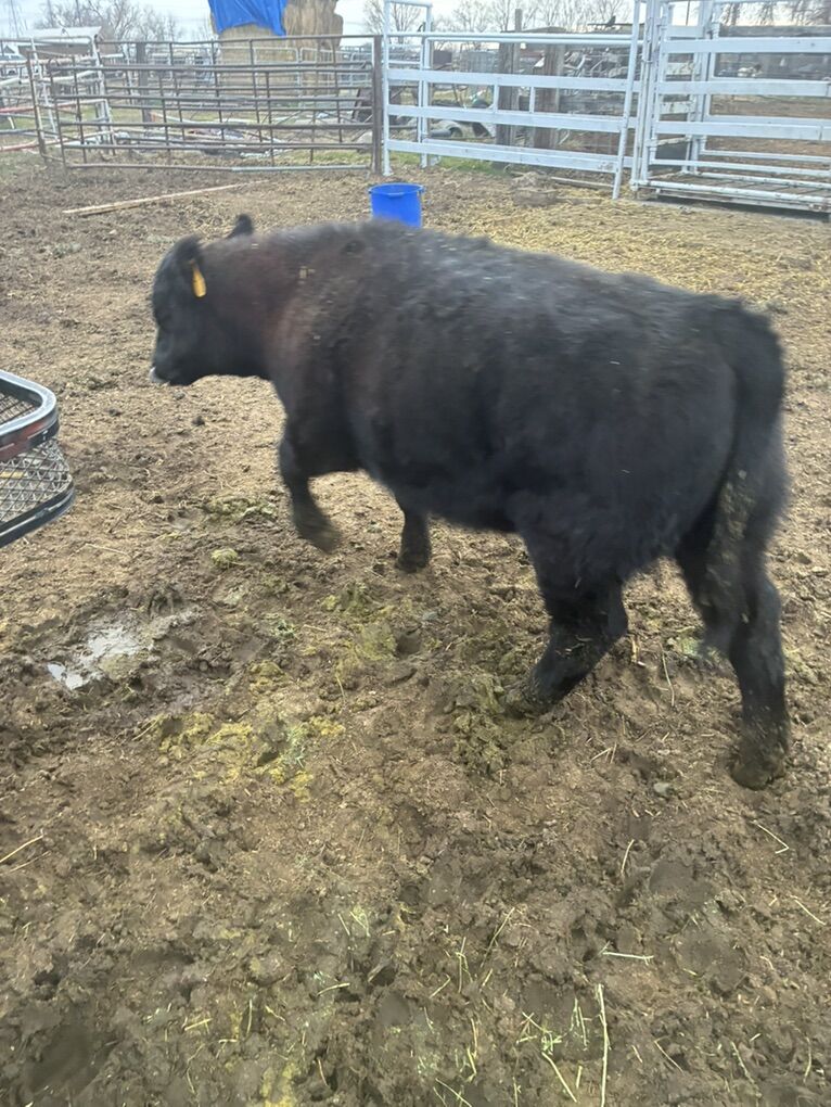 Black Angus steer calf weighing around 500 pounds. Was wormed and had his shot in December.