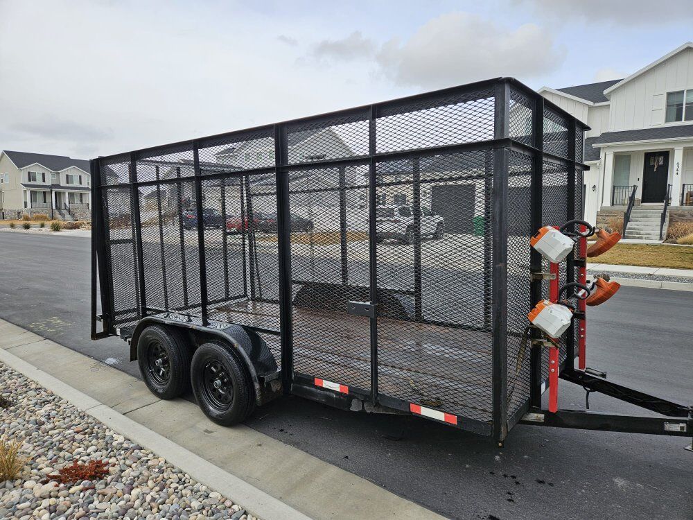 2021 landscaping trailer 7x14 title in hand ready for work coming with racks for trimmer $3350 cash or venmo call or text 385 495 1119