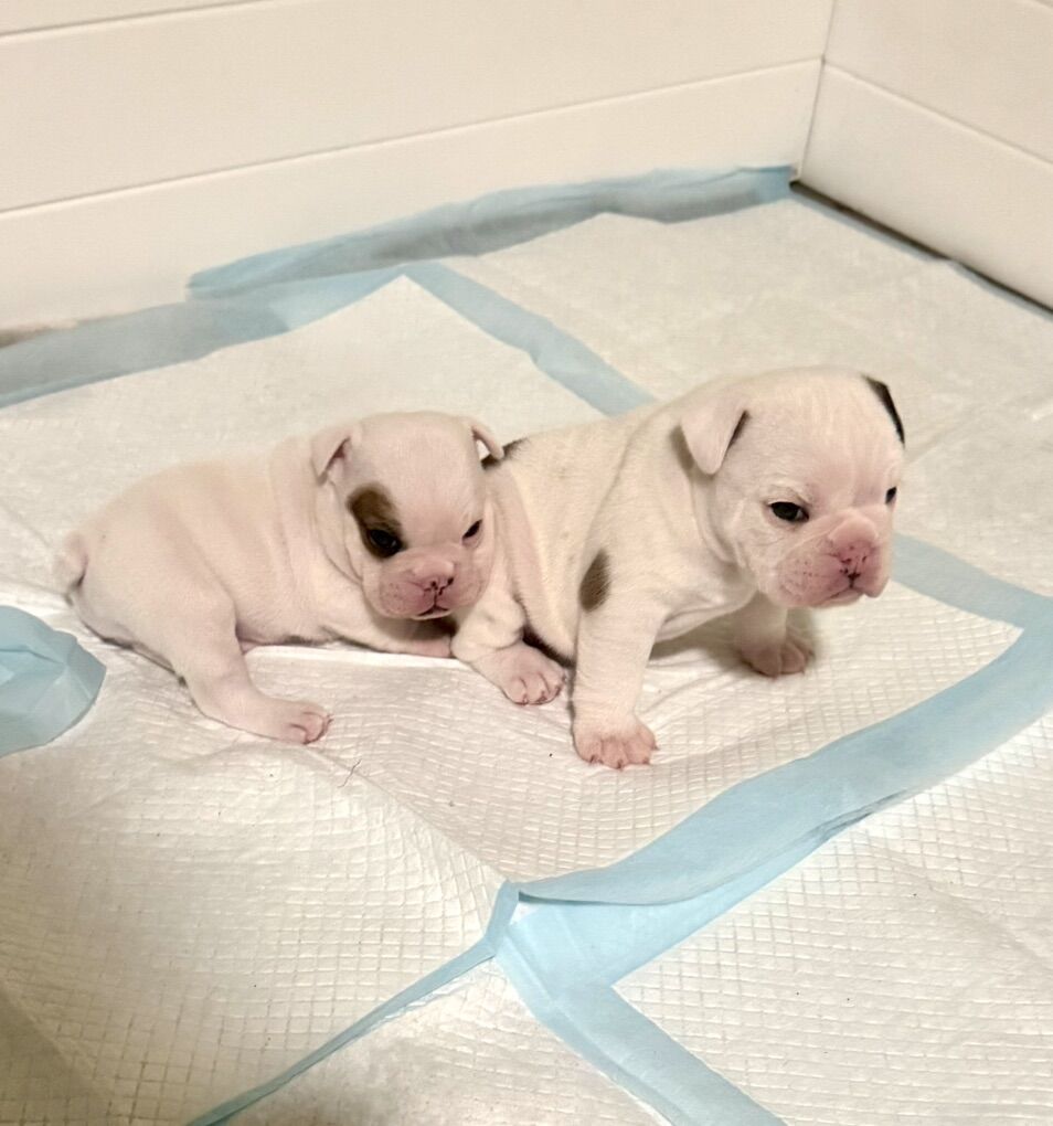2 female english bulldog puppies born on 1/12/26. Their parents come from health tested show lines. They are healthy, happy, and adore children. Please reach out if you have any questions or would like more pictures.