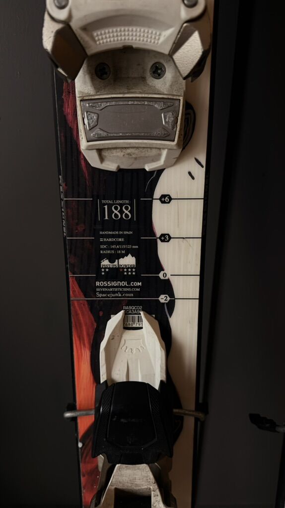 Specs: • Length: 188 cm • Dimensions: 145-115-123 • Radius: 18m • Made in Spain • Mounted with Marker Jester 16 DIN bindings, mounted for 306mm boot soles, 26.5 Mondopoint. (high-performance, burly binding) • Just received a fresh full tune — bases and edges are dialed and ready to go (Tuned by Boller-if you know, you know!)