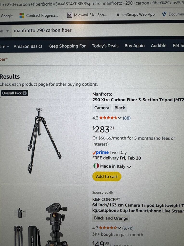 VenmoI have a Manfrotto 290 CF tripod with a Micro 391 RC2 pan head. I have used for several years hunting. Light weight and comfortable to pack. Extends to 67” in height. I will include two plates with the tripod set up.