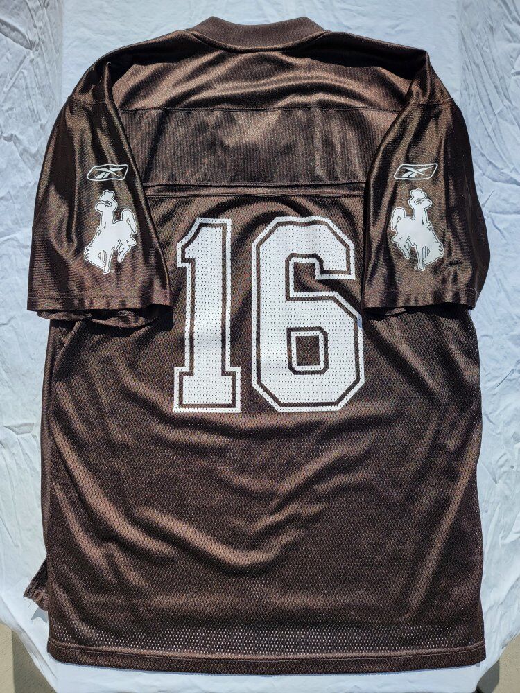 ZelleWyoming Cowboys Football Jersey #16, Size Large, home brown. Reebok brand, blank name bar. 2007 Joe Glenn era jersey. In Excellent condition! ~ $40