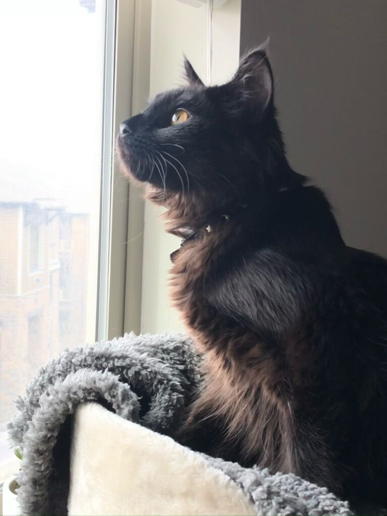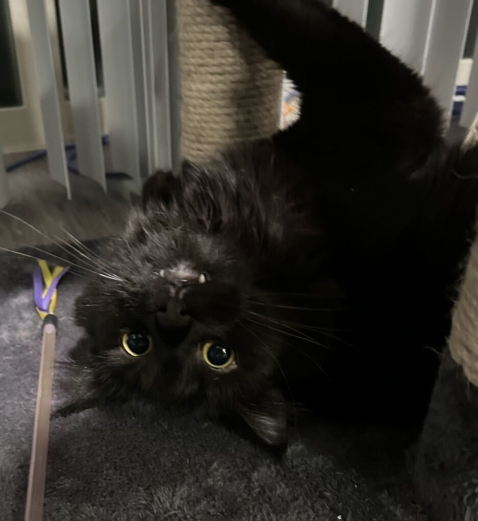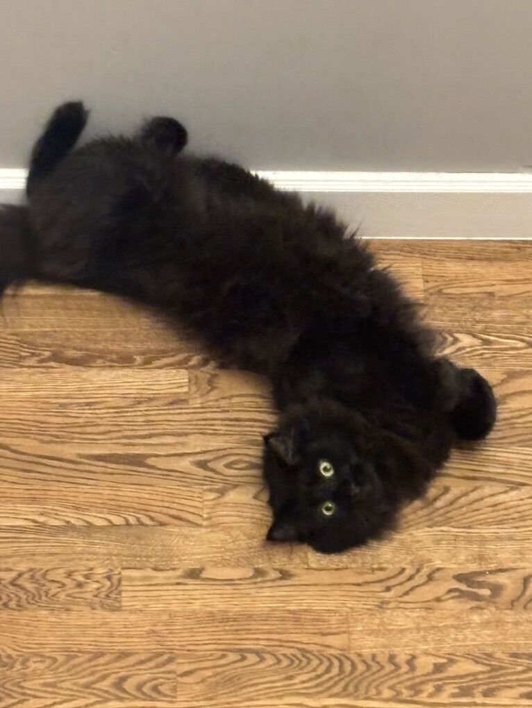 My black Spooky was last seen on Sunday 1/16 in highland. He is wearing a blue collar with a bell and a charm. He has a tiny white spot on his belly.