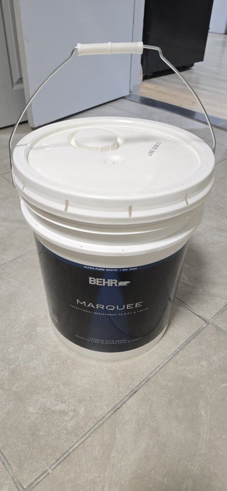 5 gal. Ultra Pure White Satin Enamel Exterior Paint & Primer MSRP: $315+Tax $150 IF YOU BUY MULTIPLE PAINT IS SEALED HABLO ESPAÑOL