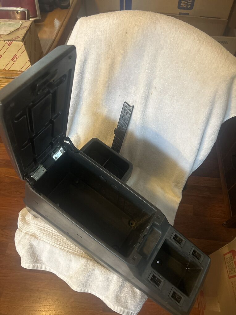 Vintage fj60 / fj62 4x4 wagon center console with cup holder. Apox years 1981-1990 grey color and excellent condition . Clean and disinfected!