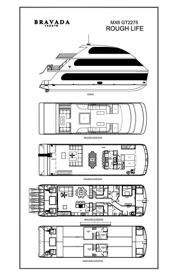 Key Features: • Custom "Reverse" Floor Plan – 75' x 22' • Accommodations: Sleeps 10 comfortably inside (up to 18 adults total) • Staterooms: 3 private staterooms + 2 lower cuddy cabins • Climate Control: 4.0-ton geothermal heating and air conditioning system • Second Level: Fully furnished with Restoration Hardware furniture • Second Level Cooling: Swamp coolers for extra comfort during warm days