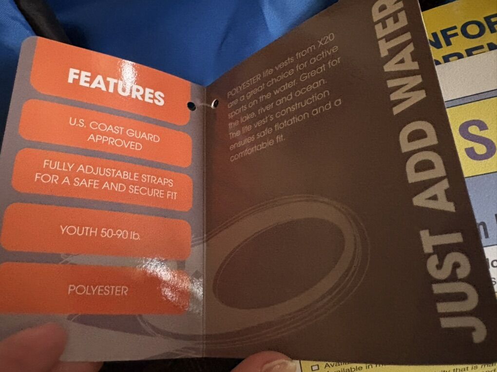 I have a new dark blue X2O life vest for youth 50-90 pounds. It still has all of the tags on it. See my other ads for jewelry, artwork, home decor and more.