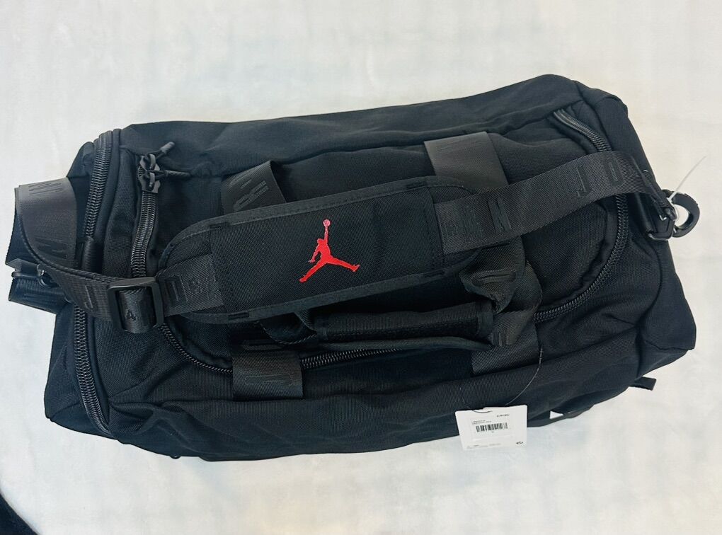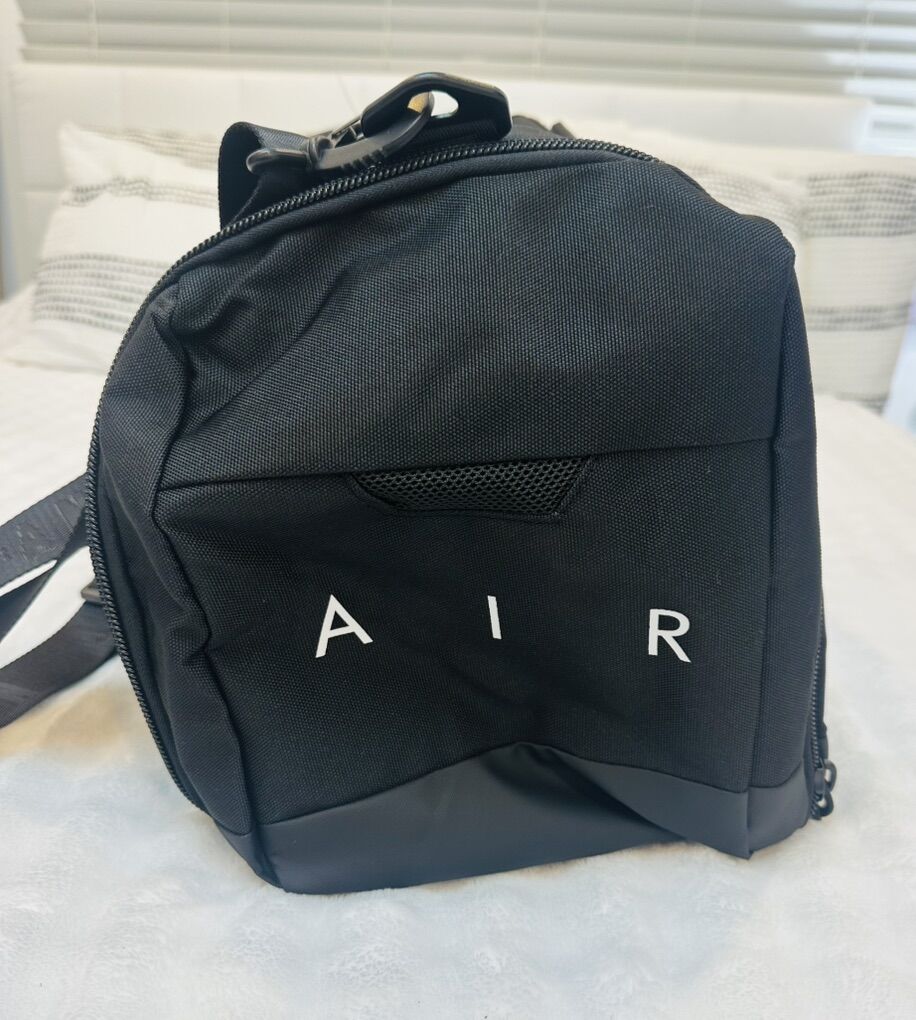 Brand new Jordan black duffel bag. Has the iconic Jumpman logo on one side and 'JORDAN' spelled out on the other, plus 'AIR' on another side. Comes with a shoulder strap and hand straps. Perfect for gym or travel. Still has the tag on it!