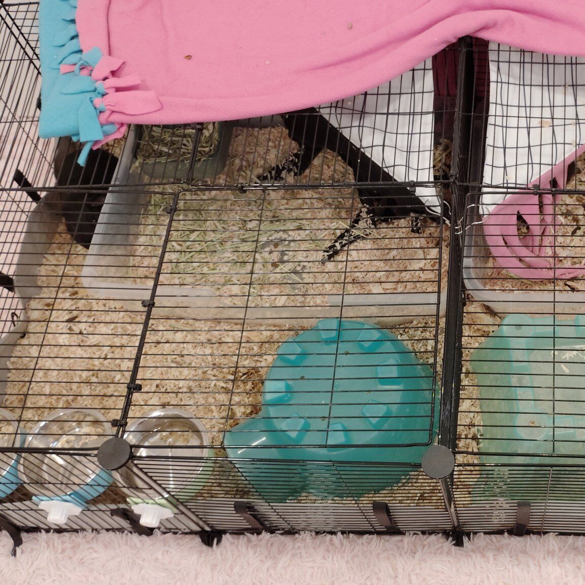 Two male guinea pigs for sale. sadly I am allergic and can not keep them. They are both very friendly with people but do not get along with each other so we have to separate their cage, they do usually get along outside of their cage just not around food. they come with everything. food and water bowls, hay feeder, hideouts, the cage, pealets, flecee blankets, and bedding.