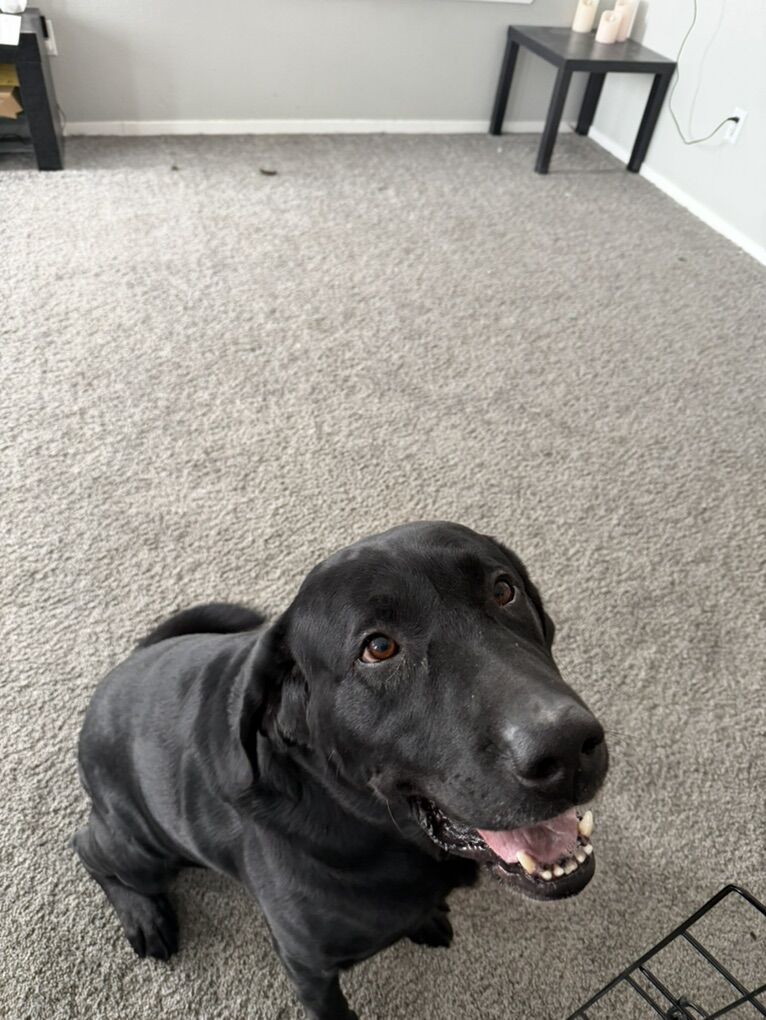 We are having to re-home our dog Chybs. Chybs is a fun, playful, lovable full bred black lab. He is 7 years old but still acts like a puppy. He loves cuddles and getting rubs. This has been a very hard decision but, With work I don’t have much time for him and want him to go to a good home where he will be able to play and get lots of attention.