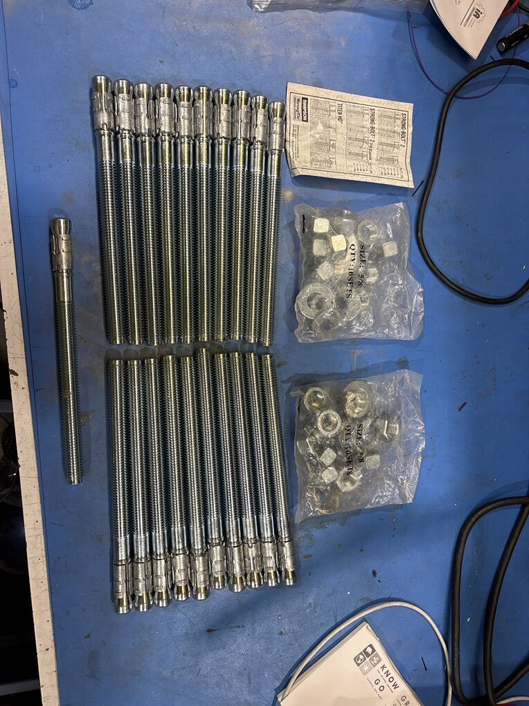 Venmo5/8” x 8-1/2” long Simpson strong tie anchor bolts. 21 of them in the box. Hardware for 20 bolts.