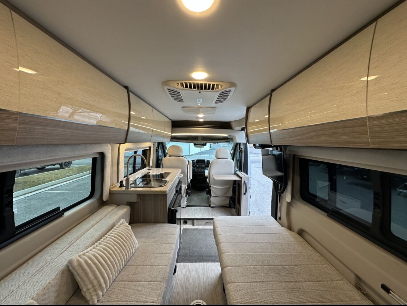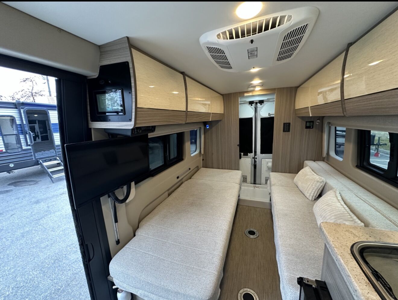 Rear twin beds that convert to a larger sleeping area