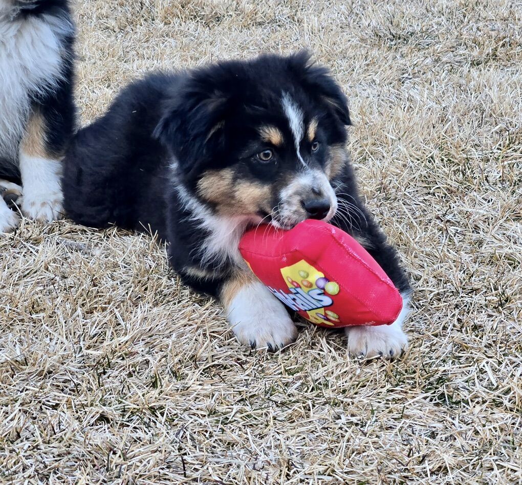 VenmoWe’re so proud of this beautiful litter of Australian Shepherd puppies, born November 22, 2025. Each one is raised right in our home with daily love, care, and socialization. They’re exposed to household activity, early play, and gentle handling to help them grow into confident, affectionate companions. Their parents are AKC registered with clear genetics by parentage, and both have wonderful temperaments we’re thrilled to see passed on to their puppies. Whether you’re looking for a hiking buddy, a family companion, or a loyal best friend, these puppies have so much heart to give. They’ll be ready to join their new families on January 17, 2026. Puppies will go home with their registration application, 30 days of health insurance, first set of shots and regular deworming, health exam by vet, and bag containing puppy food toys etc. Current price is a reduced pet price. If interested in Full/breeding rights puppies are $1,200.