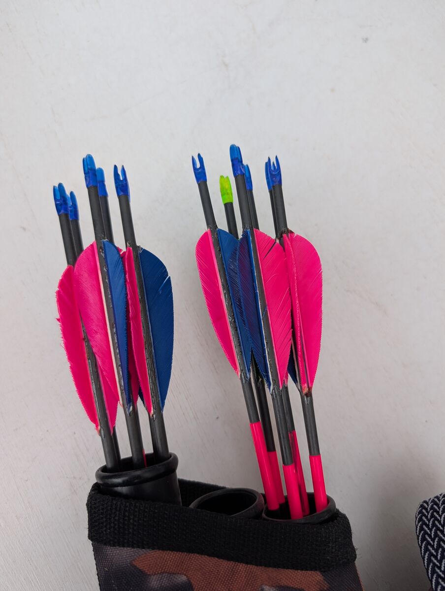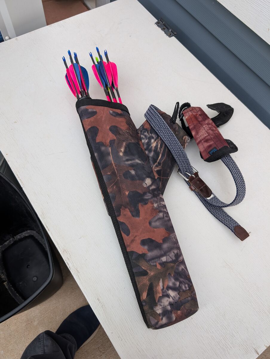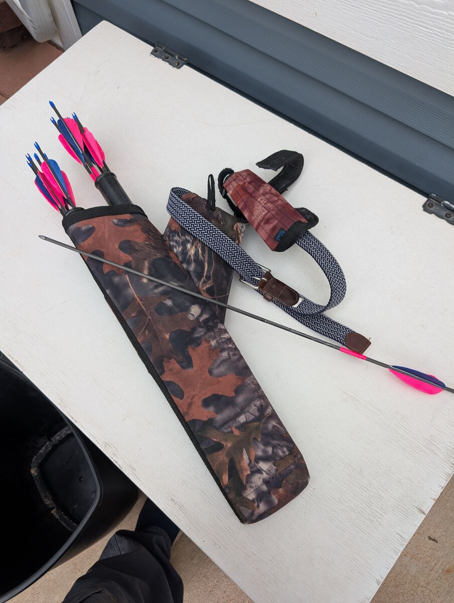 Includes a quiver, 12 carbon fiber arrows and arm guard.