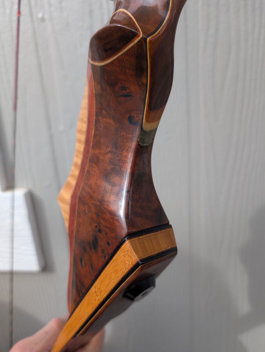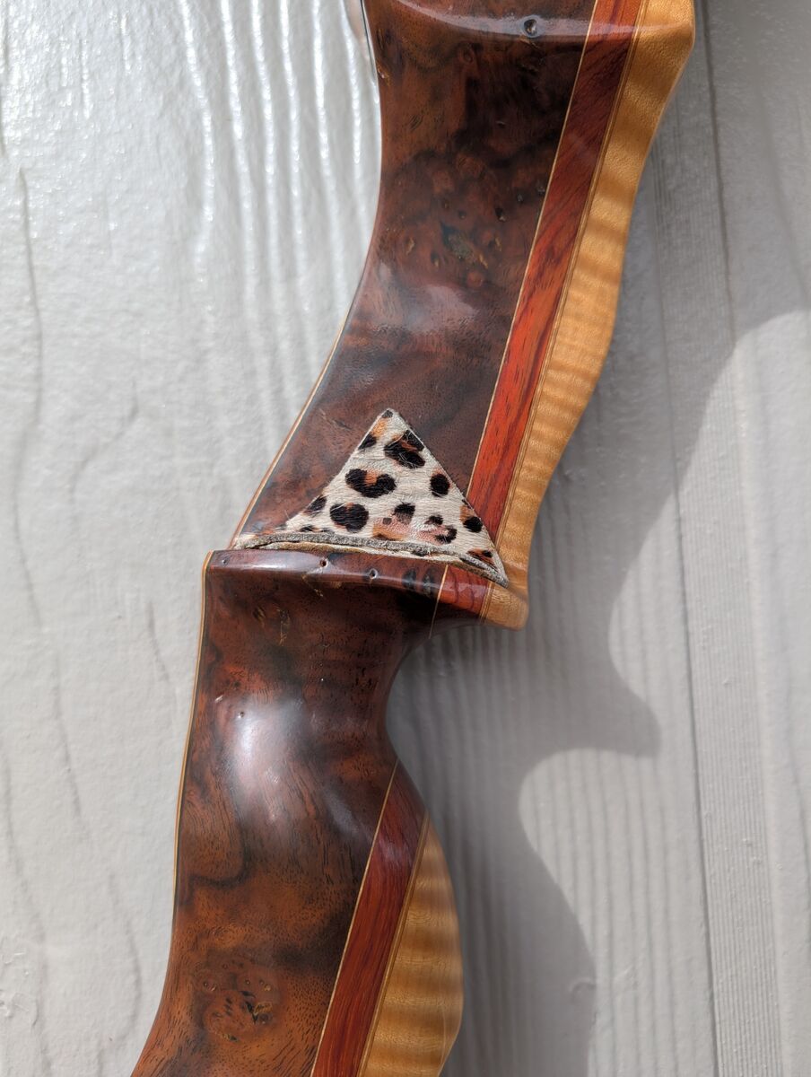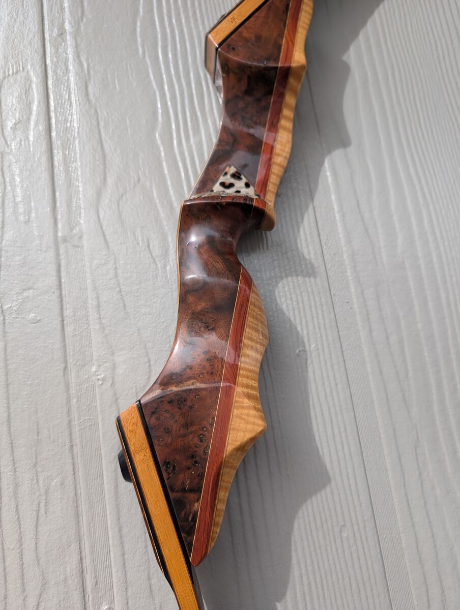 Custom Made Traditional Bow. 20 lb pull perfect for women or children. Bow is a combination of Walnut Burl, Walnut, Tigerwood, Maple and Bamboo.