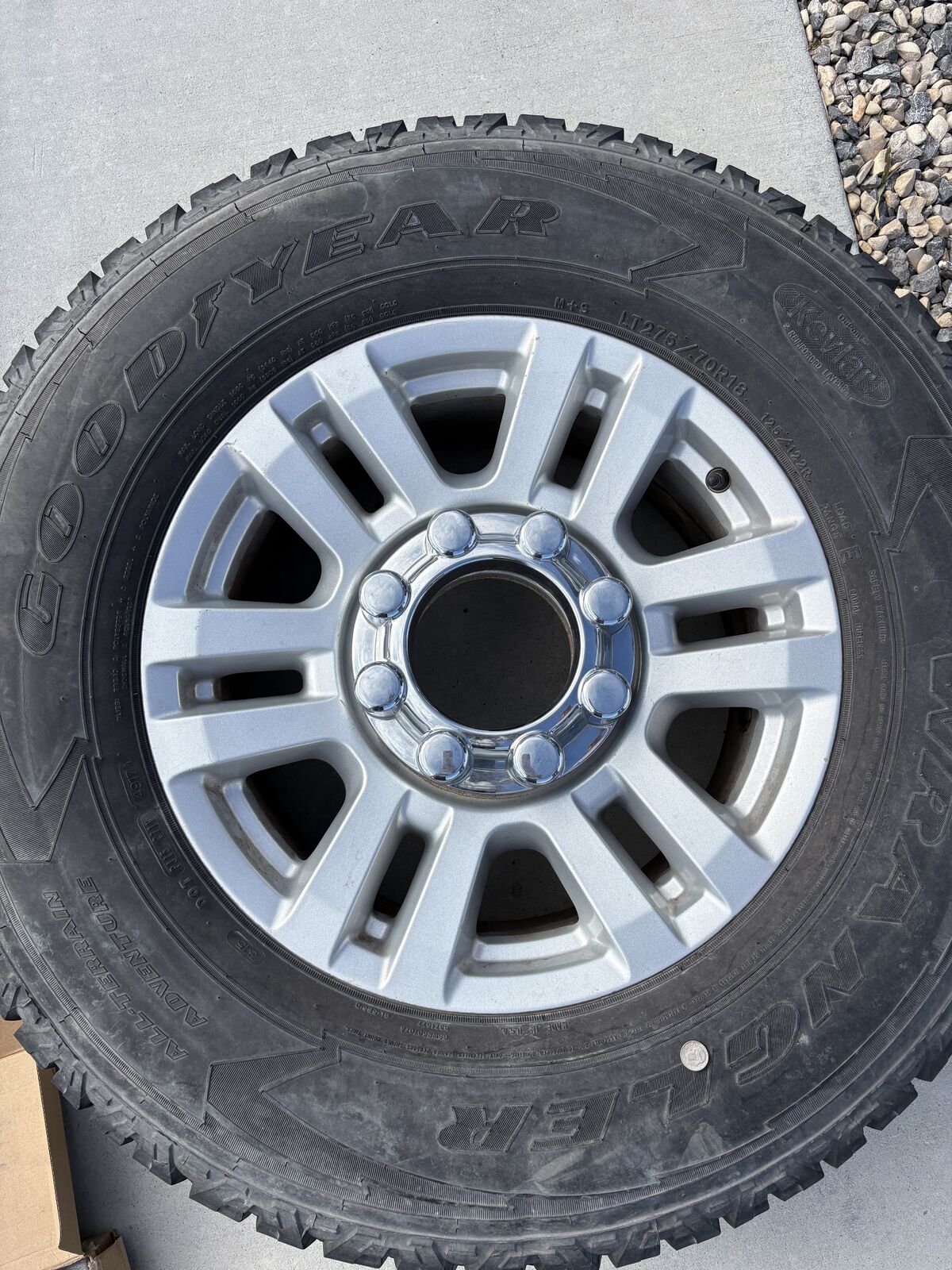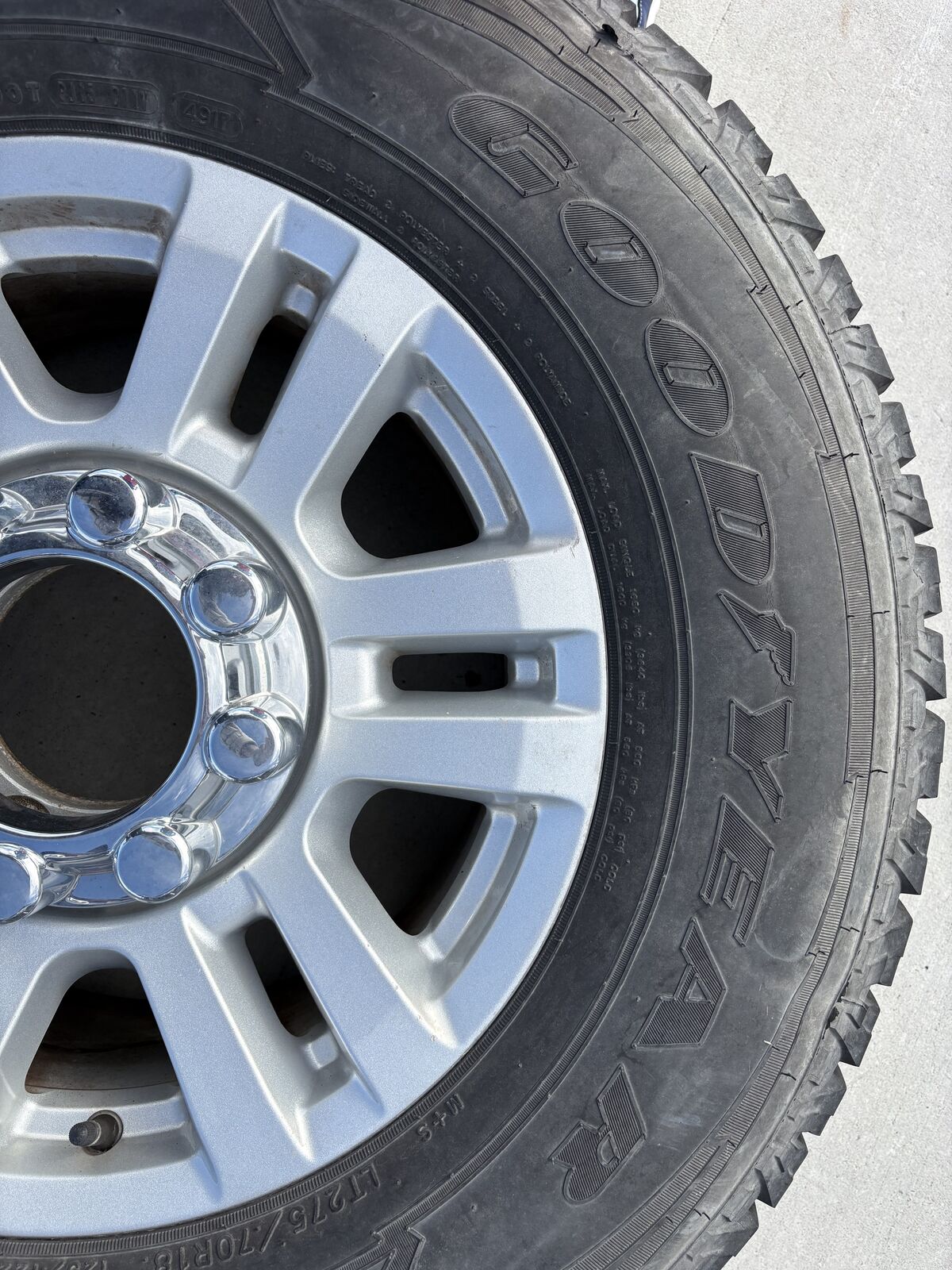 VenmoFord F250-F350 Wheels and Tires OEM Ford take offs. Bought these and did not end up using them. Needed a different size. Still plenty of tread and wheels are in great shape. Tire: Goodyear Wranglers with plenty of tread left on them. Tire Size: LT275/70R18 Wheel: OEM Ford Wheels with all lug nuts and hub caps