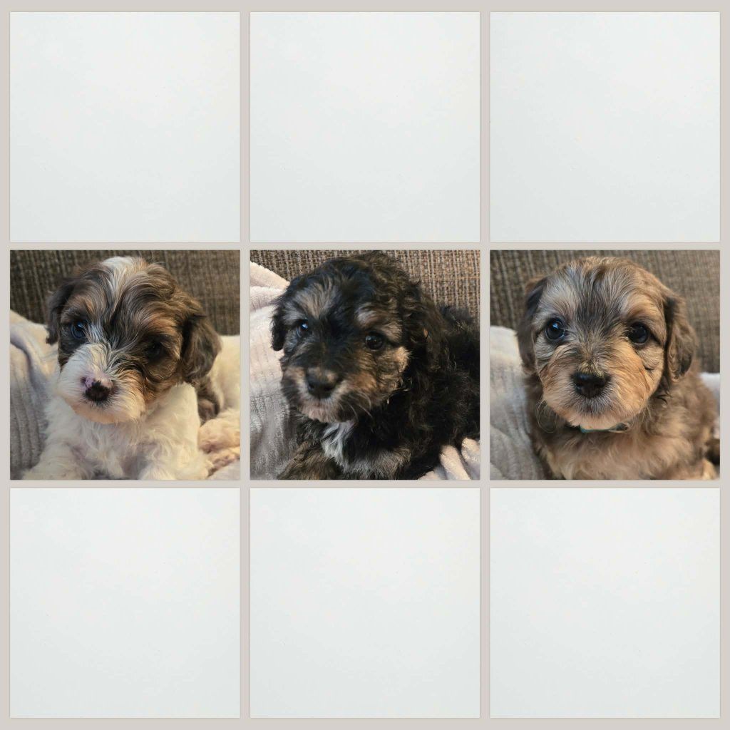 These puppies are a designer breed. Their mother is a 15lb Bernedoodle Cavapoo mix, and their father is an 8lb AKC registered Toy Poodle.