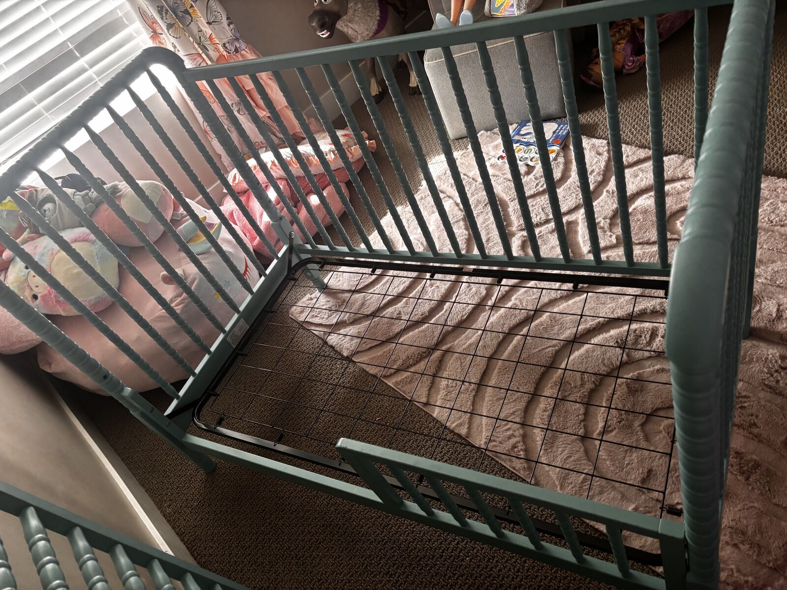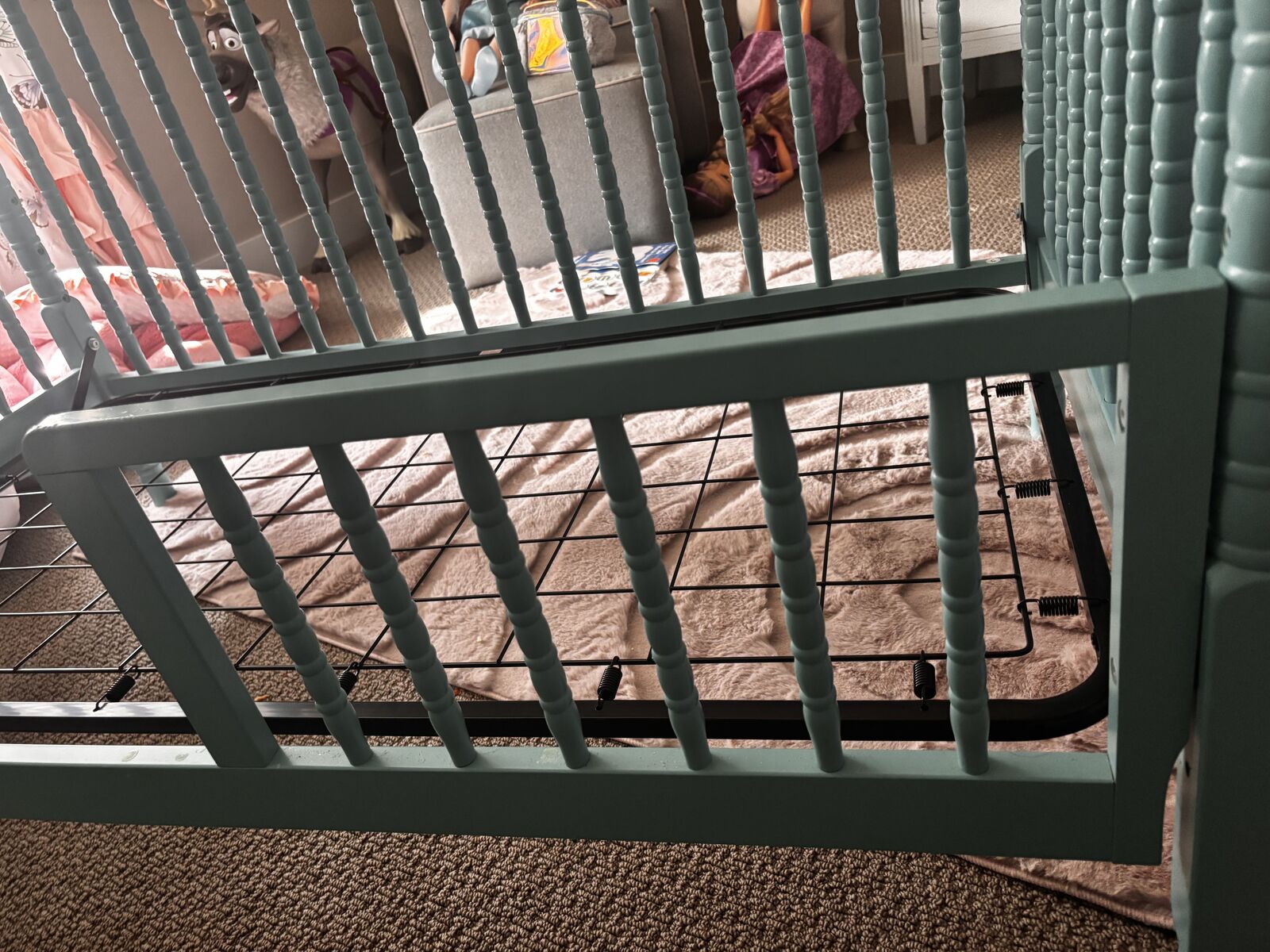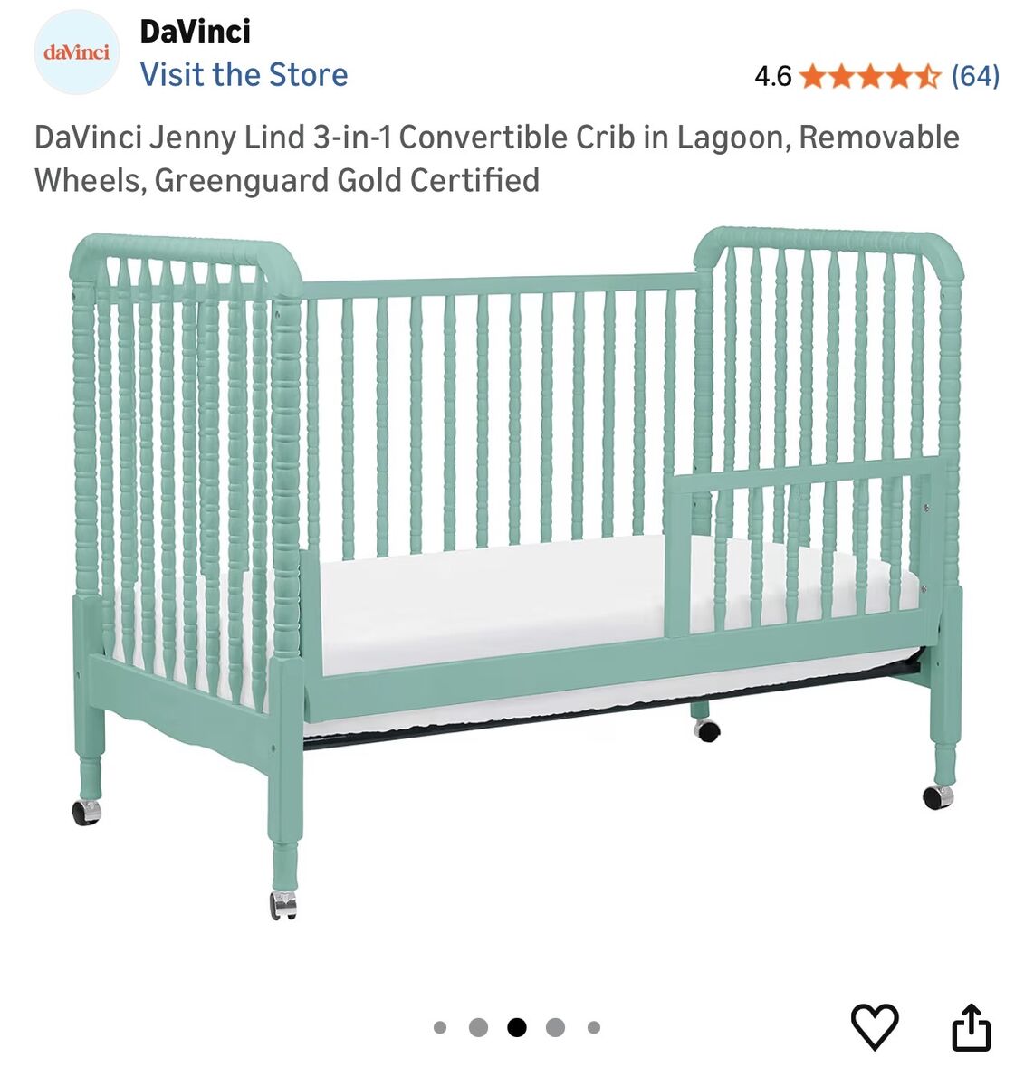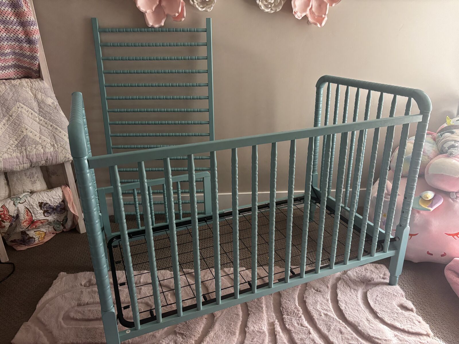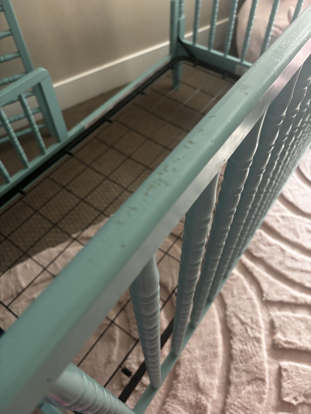 ApplePayCrib that converts to toddler bed. Has wheels that can attach we just never used them. Beautiful teal blue color that we utilized both for baby boy and girl. You are also welcome to take the mattress or I will just dispose it. The wood has some minor marks as seen in pictures but is in otherwise good condition from a smoke free home. $75 cash or Venmo Lehi pickup. 801 471 9936