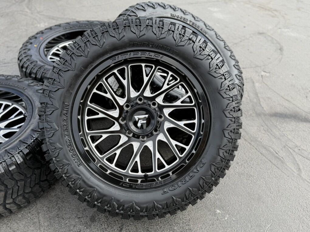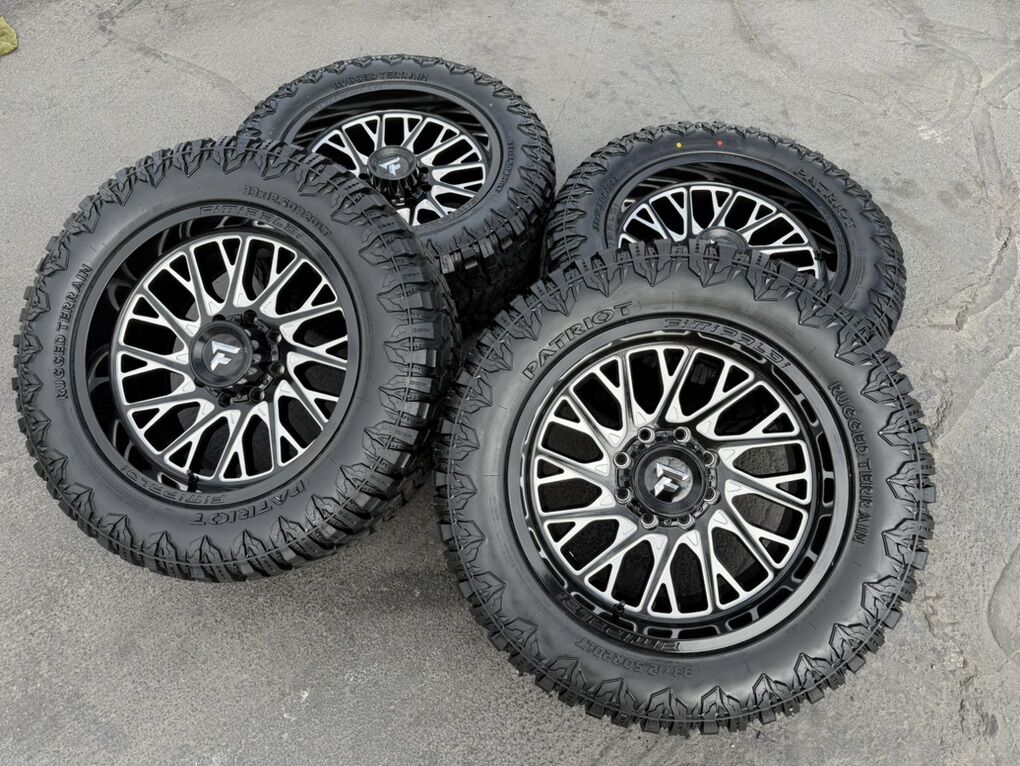 ApplePayBrand new 20x10 Fittipaldi FA08 -19et offset. Mounted and balanced on 12 ply load F 33x12.50r20 Patriot RT tires. 8x6.5 (8x165.1) bolt pattern. These fit Dodge Ram 2500 3500 Cummins, PRE 2011 Chevrolet Silverado GMC Sierra Duramax, and PRE 98 Ford F250 F350 Superduty trucks. Huge saving! Call or txt 435-760-1194