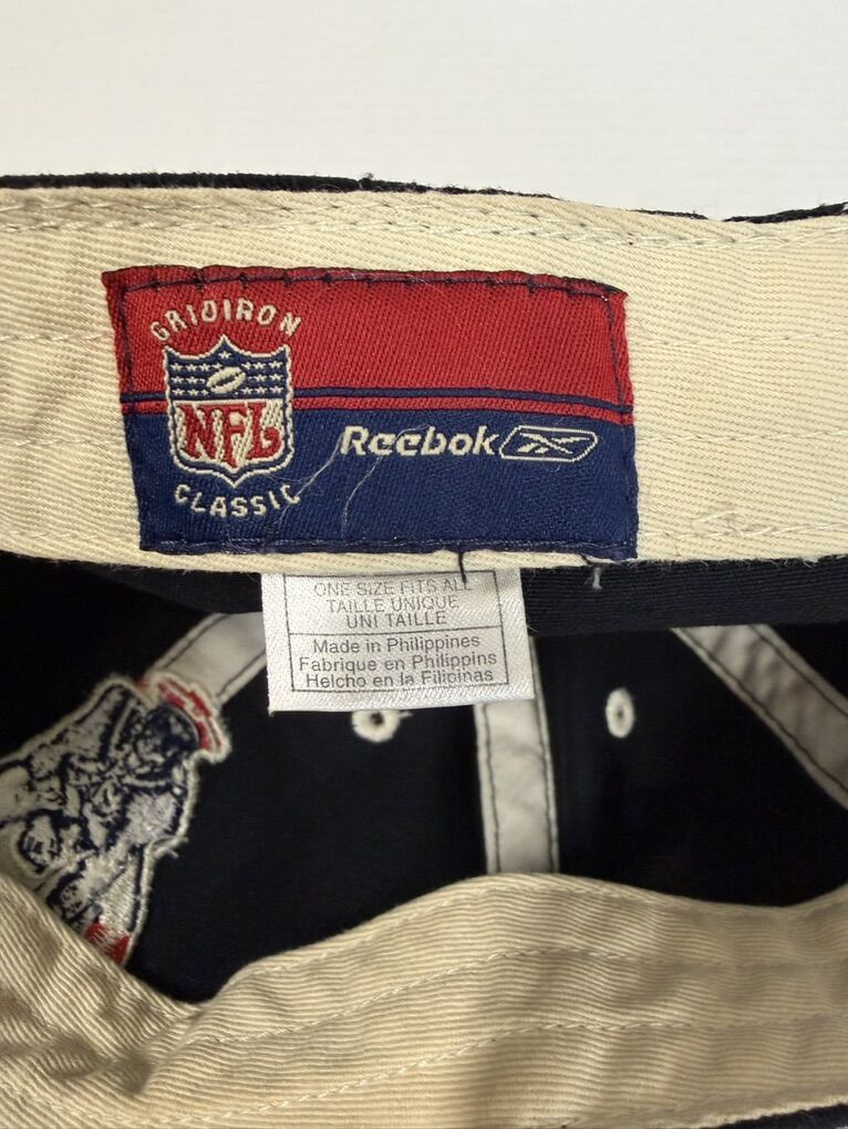 Hat is pre-owned, please review pictures for any signs of wear and tear. The New England Patriots Vintage Throwback Patriot Pat Logo Adjustable Hat by Reebok is an officially licensed cap that pays tribute to the iconic football team. Featuring the team's signature logo and colors, this hat is a must-have accessory for any fan of the New England Patriots and Tom Brady. With its adjustable design, this one-size fit-all hat is perfect for both men and women who want to show their support for the team during the regular season games of the NFL. Made by a trusted brand like Reebok, this hat combines style and team spirit for a classic look.